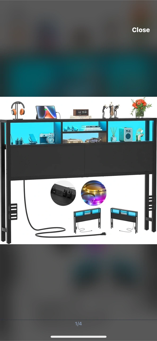 Selling a brand new Queen size VLiving headboard still in its original box! This headboard features built-in LED lights to add a cool ambiance to your bedroom. It's a sleek black color and comes with all the necessary components for assembly, including the instructions