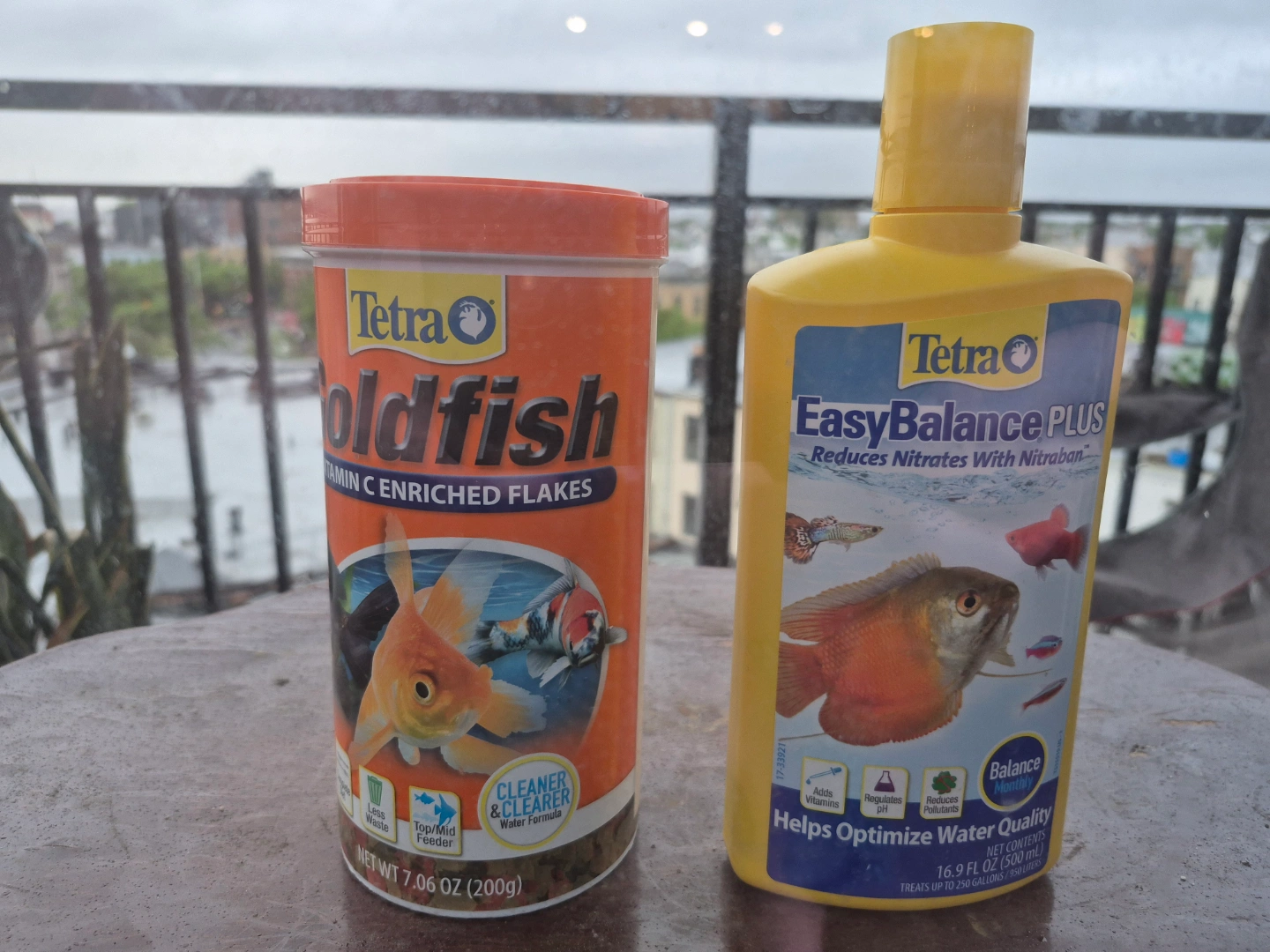 Tetra Goldfish Vitamin C enriched flakes, 7.06 oz (200g). Tetra EasyBalance Plus reduces nitrates with Nitraban, 16.9 fl oz (500 mL). Treats up to 150 gallons. Hardly used.. will sell separately