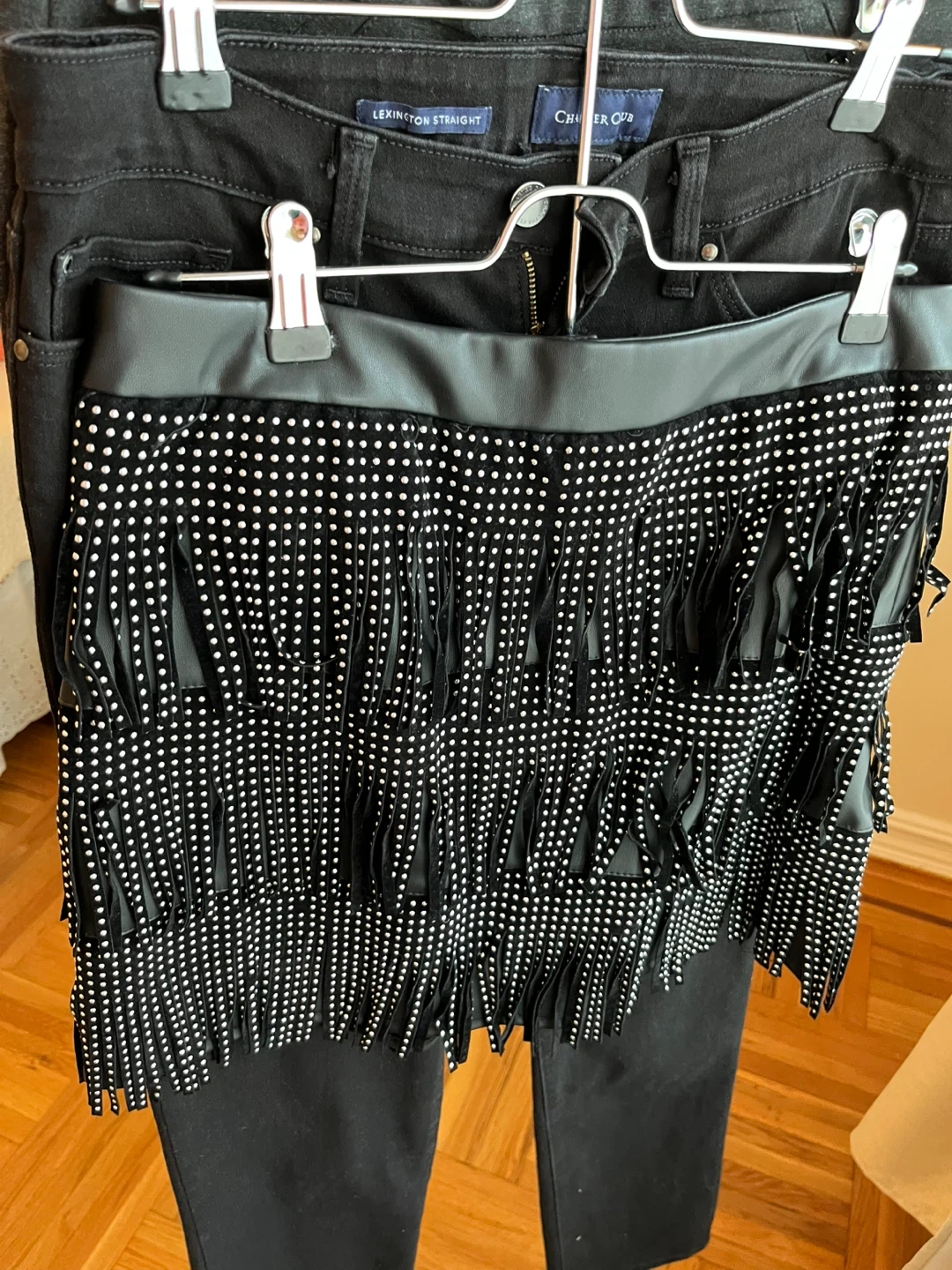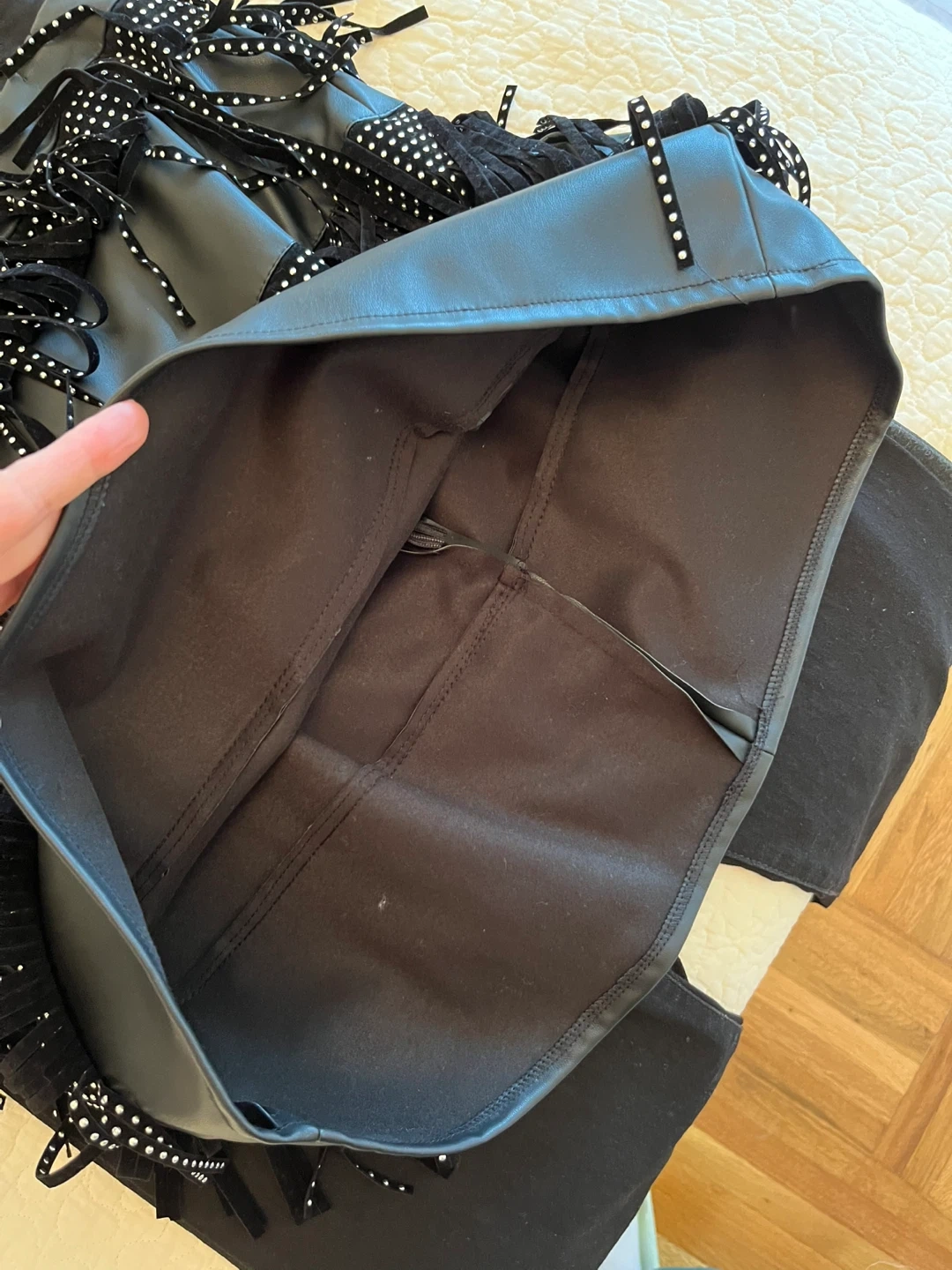 Selling a cute black skirt from Sincerely Jules! It has fun fringe and studded detailing. The size is L.