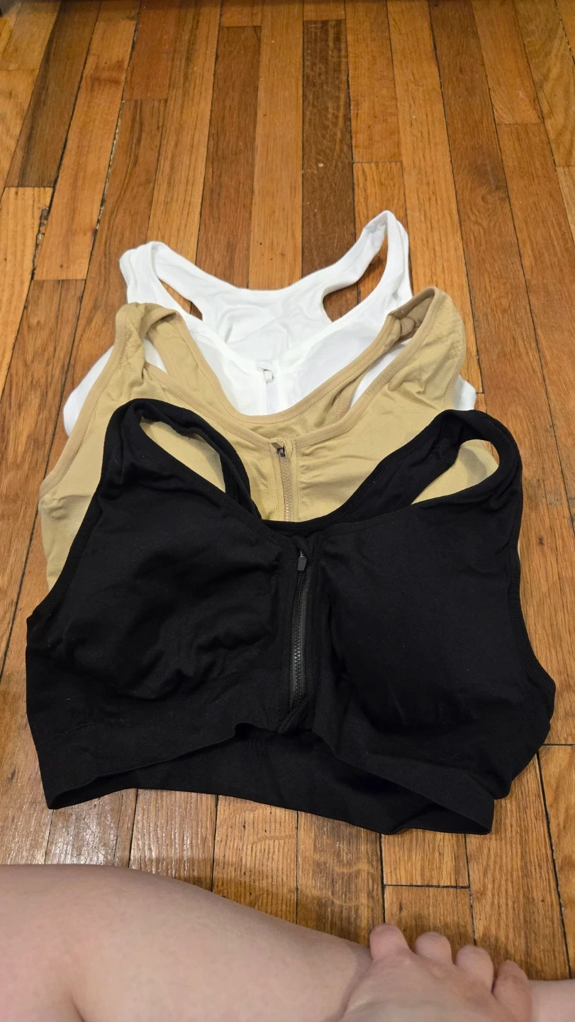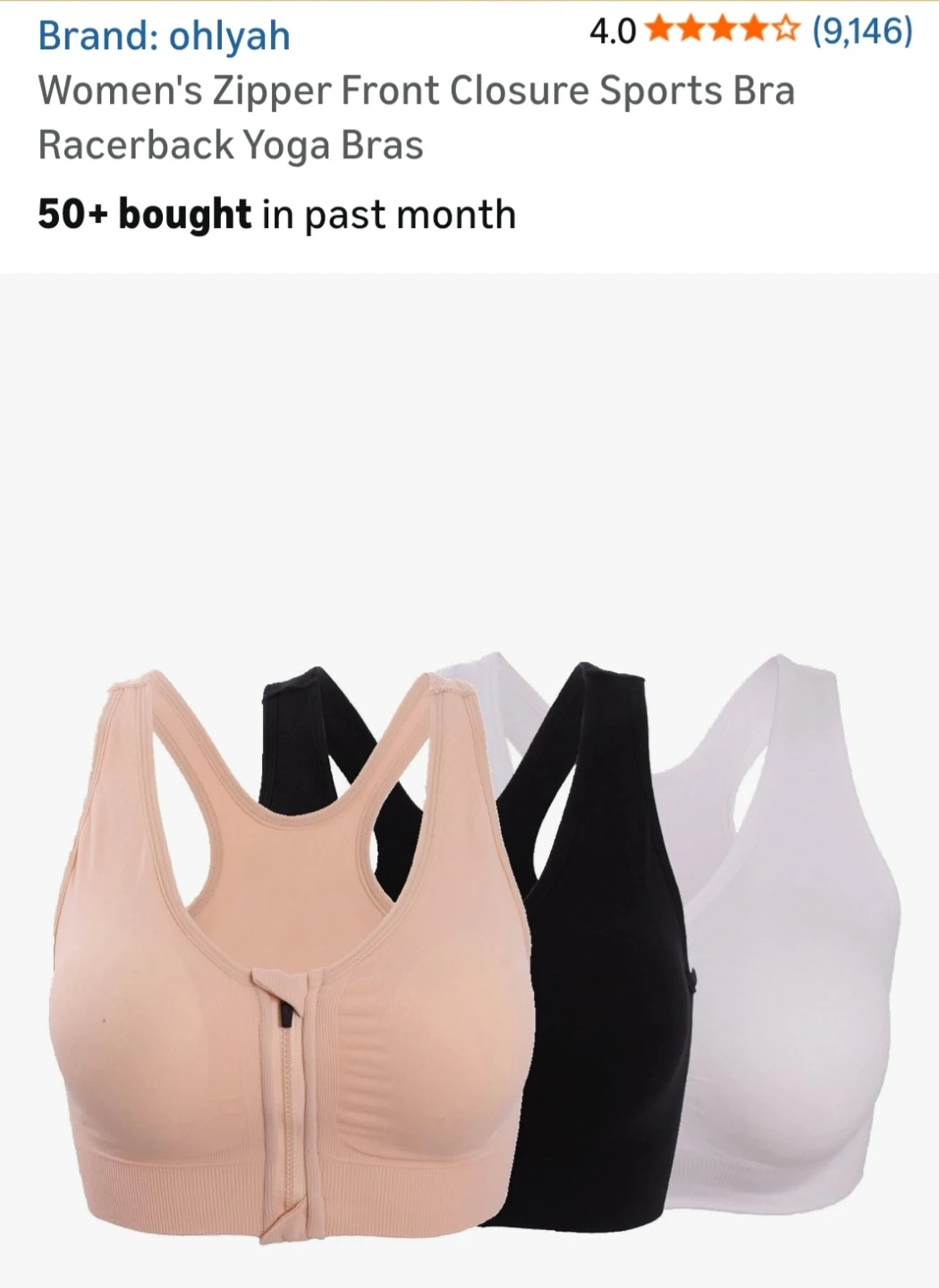 This is a set of three ohlyah women's sports bras. They feature a zipper front closure and a racerback design.