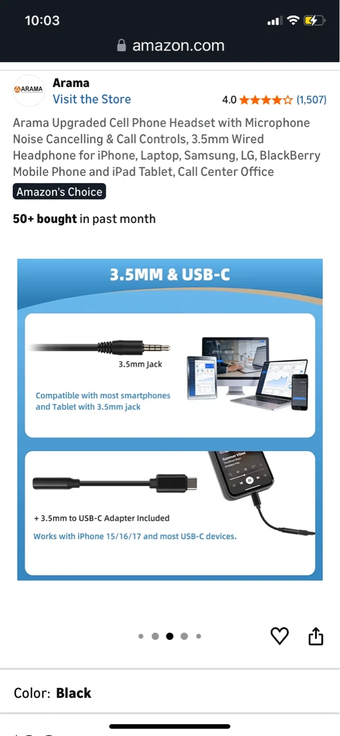 This Arama headset offers wideband audio for clear sound and a noise-canceling microphone. It's ultra lightweight with soft ear cushions. Features include intuitive operation with answer/end calls and volume controls via a single click.