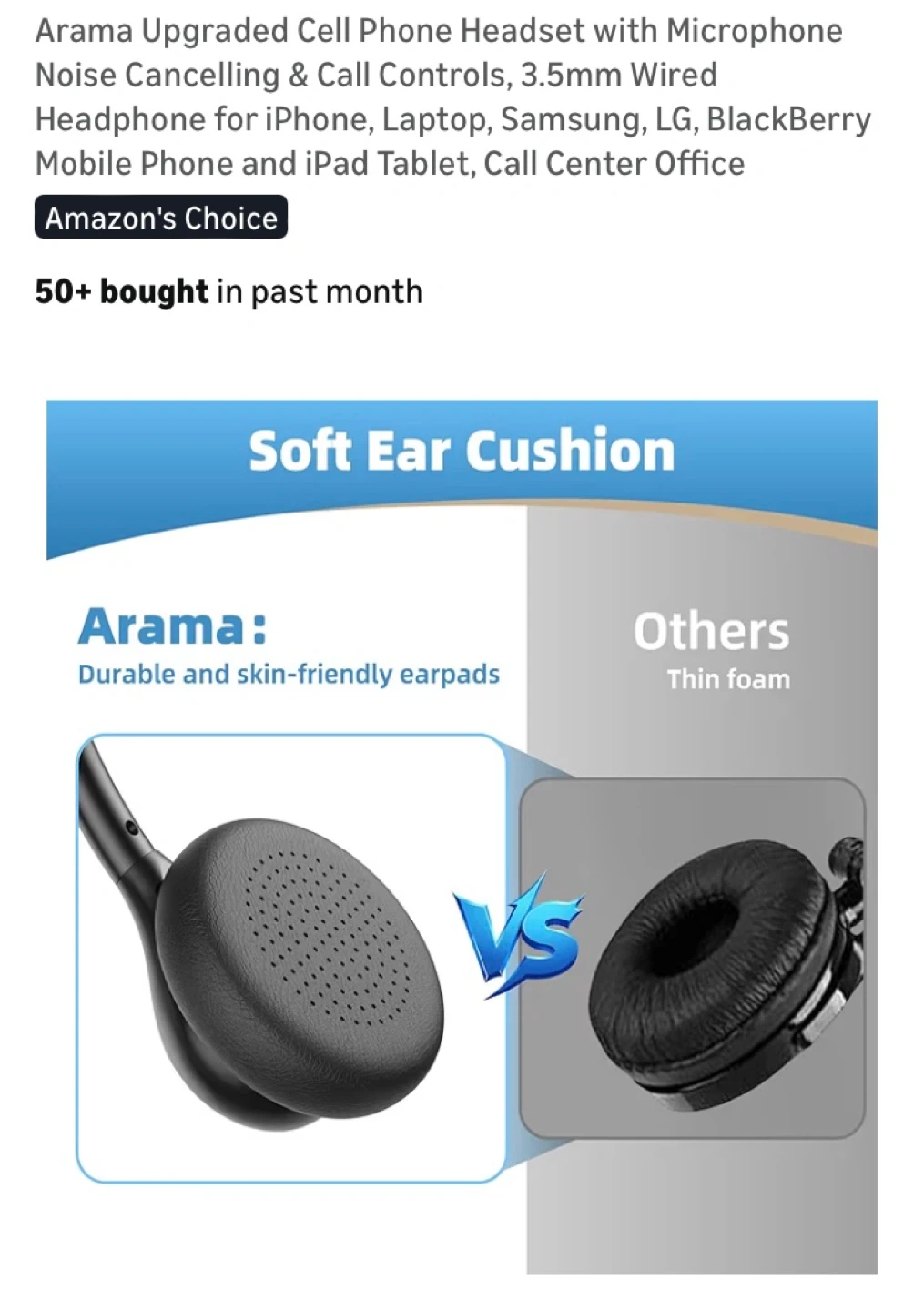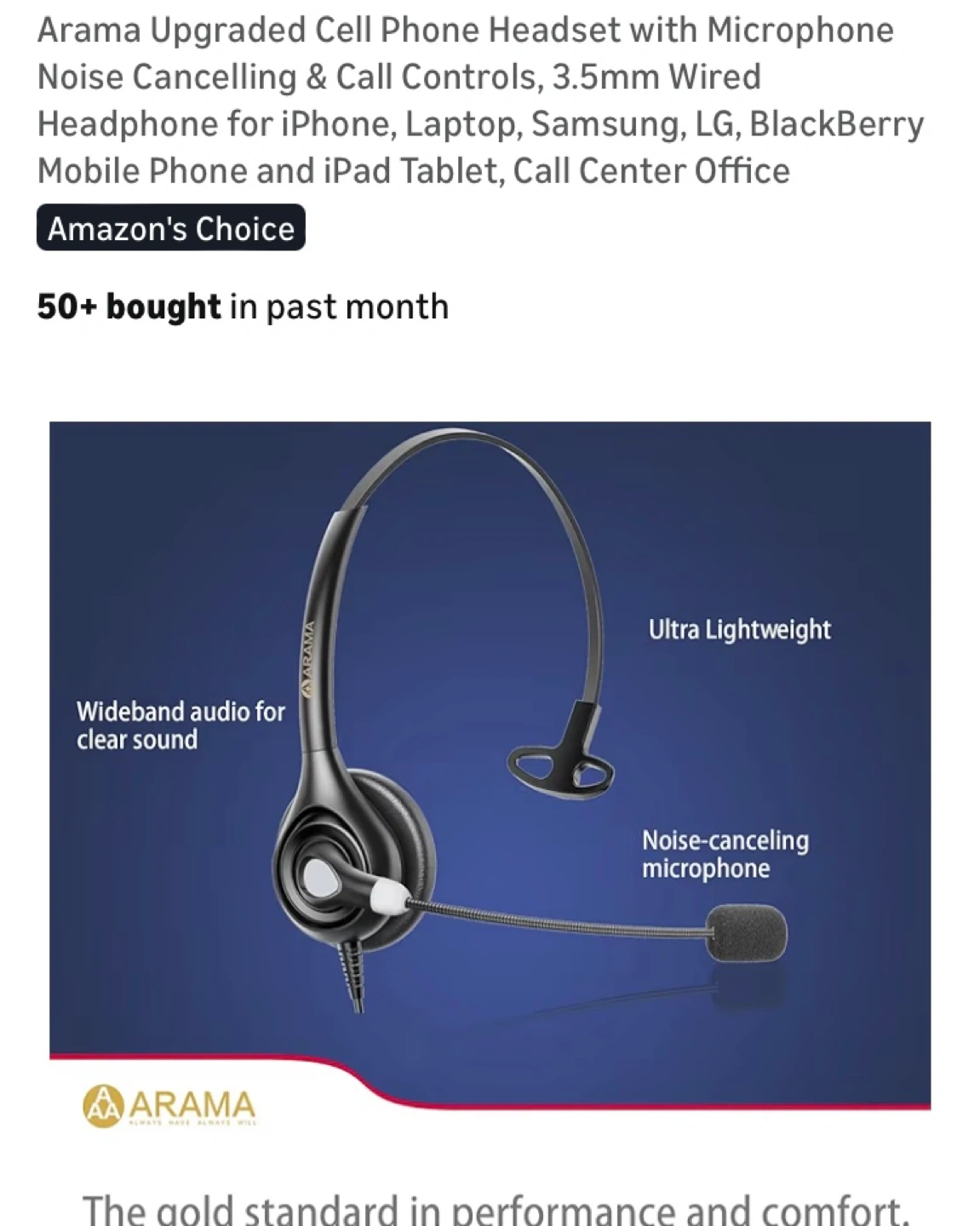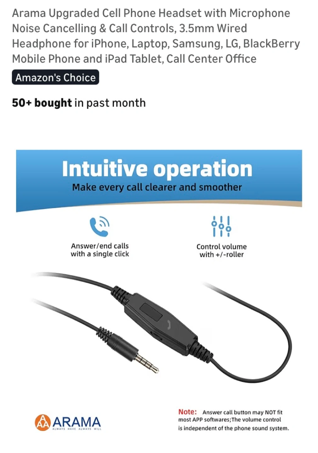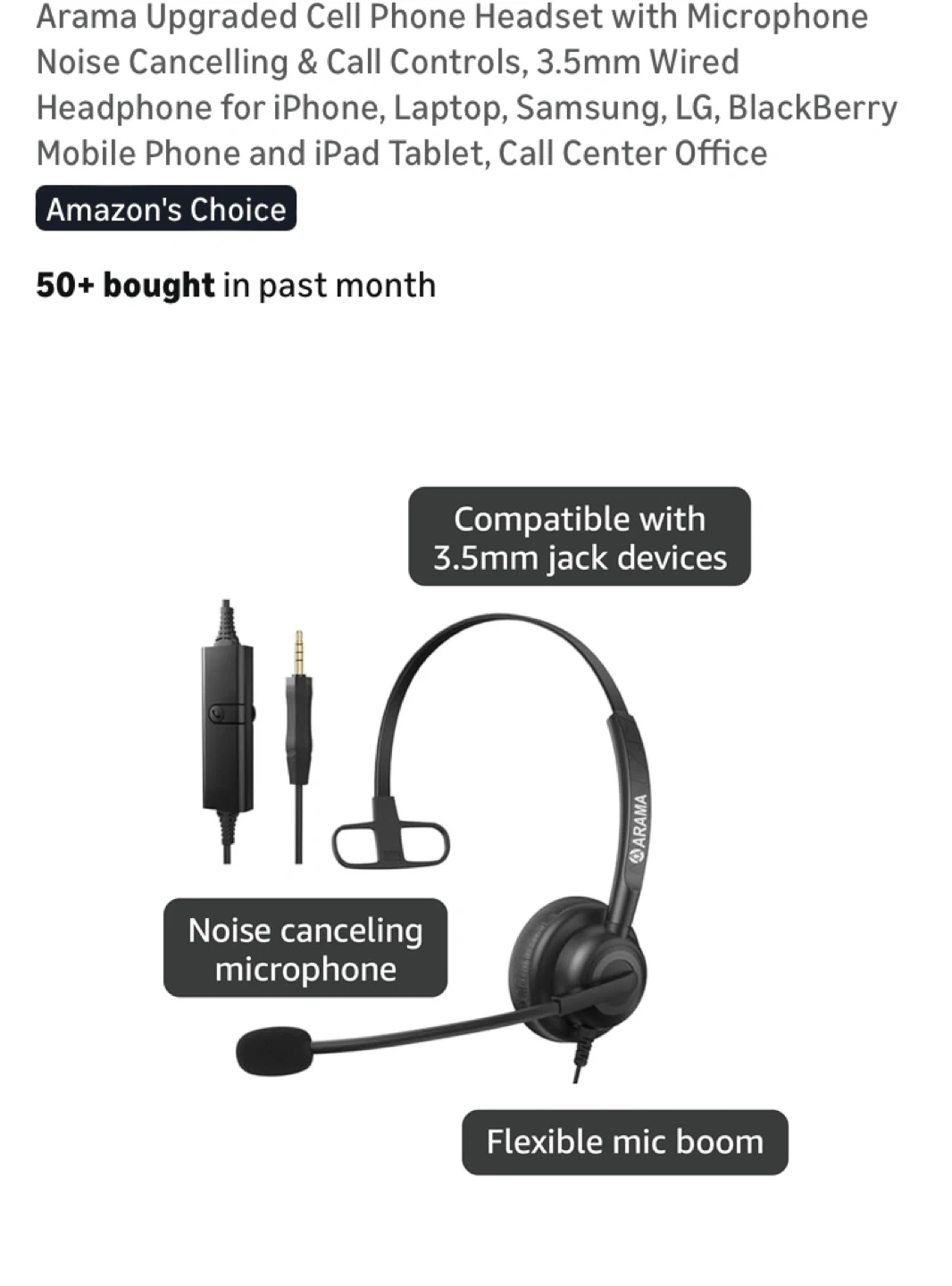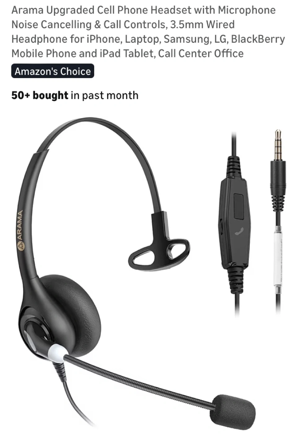 Arama Cell Phone Headset with Microphone