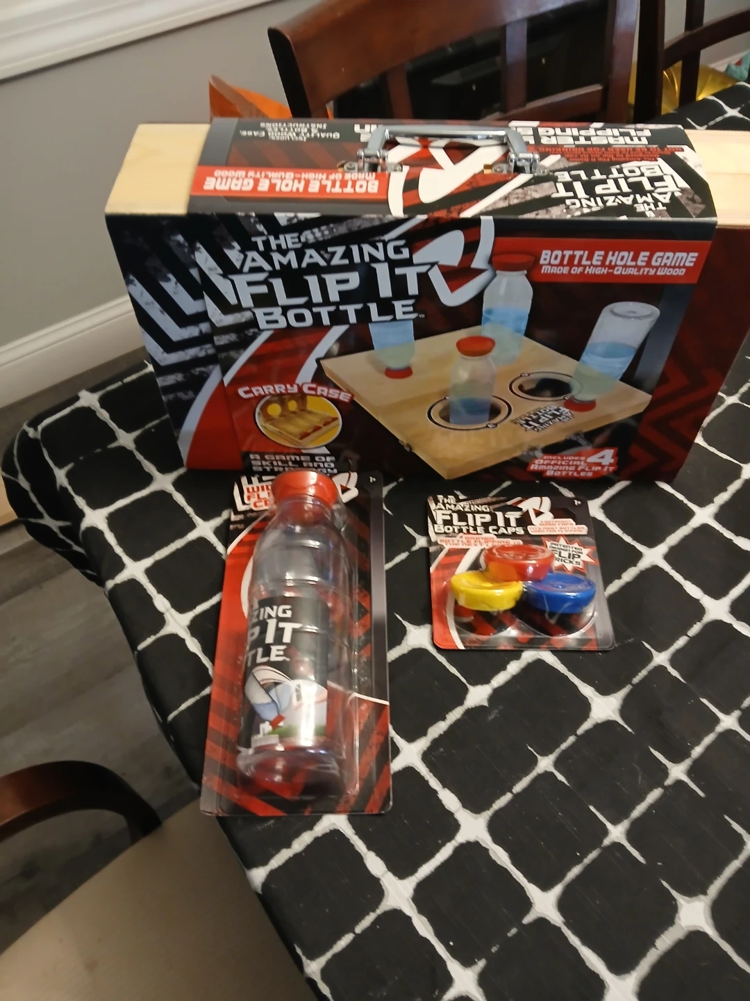 10Selling The Amazing Flip It Bottle game. It's a bottle hole game made of high-quality wood. It comes with a carry case and bottle caps. Great for some fun!