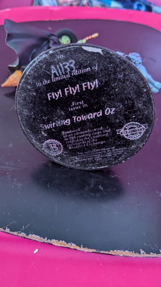 140Selling a Wizard of Oz figurine from The Bradford Exchange. It's titled "Fly! Fly! Fly!" and is the first issue in Winging Toward Oz. It's number A1133 in the limited edition.