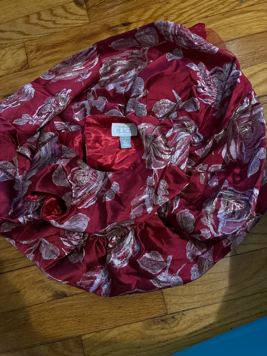 70This adorable dress from The Children's Place is perfect for your little one! It's a size 12-18 months and features a beautiful floral pattern in red and gold. It's in great condition and ready for a new home
