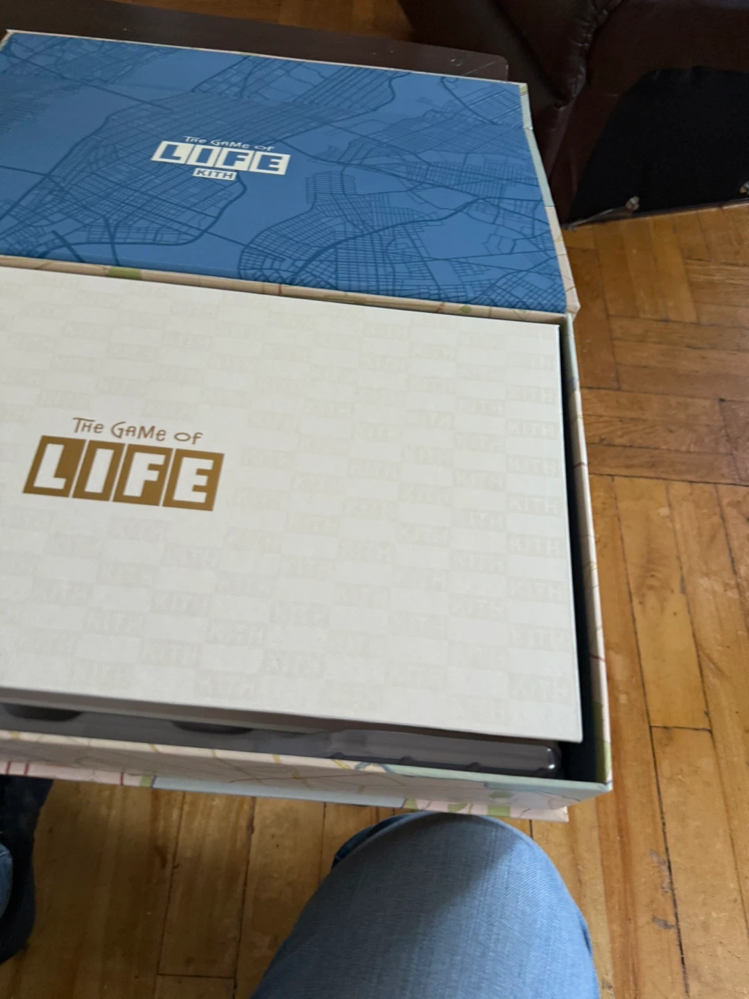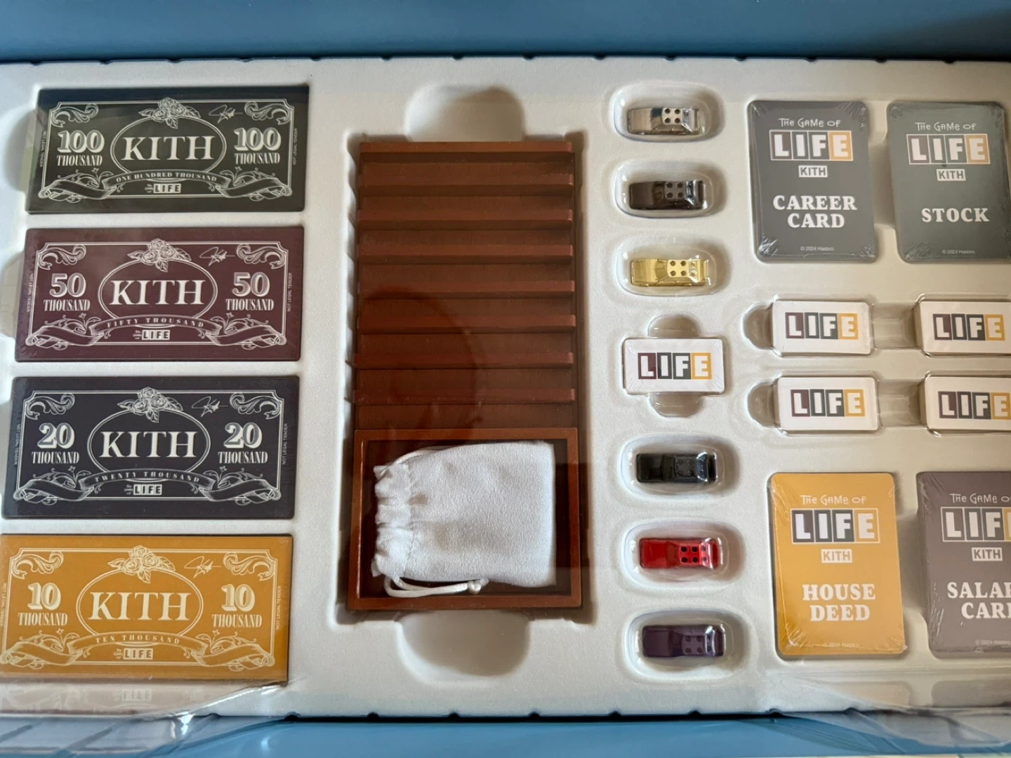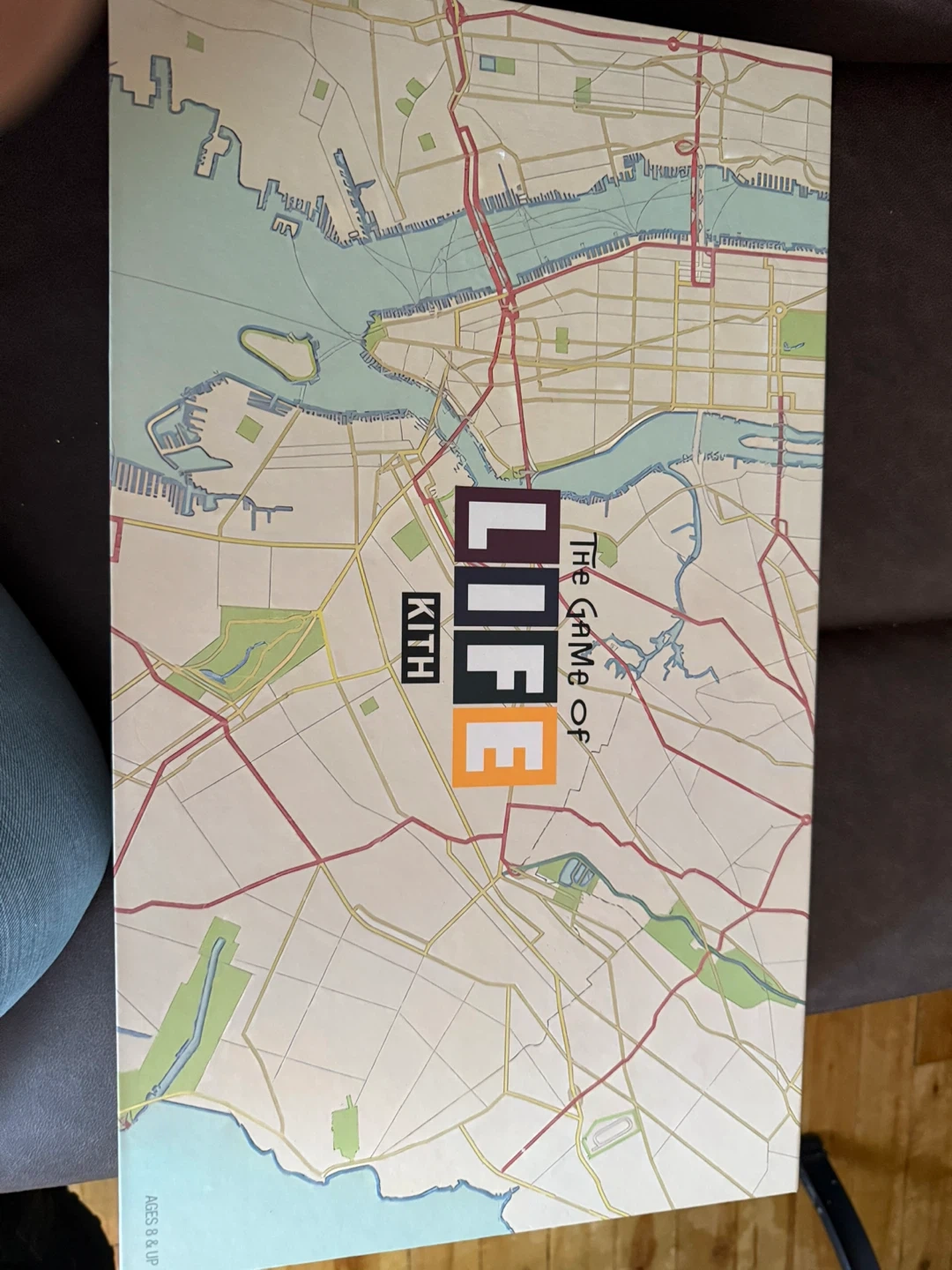 Selling The Game of Life Kith Edition board game! It's a fun twist on the classic game with unique Kith branding and design. Includes all the original components and the box