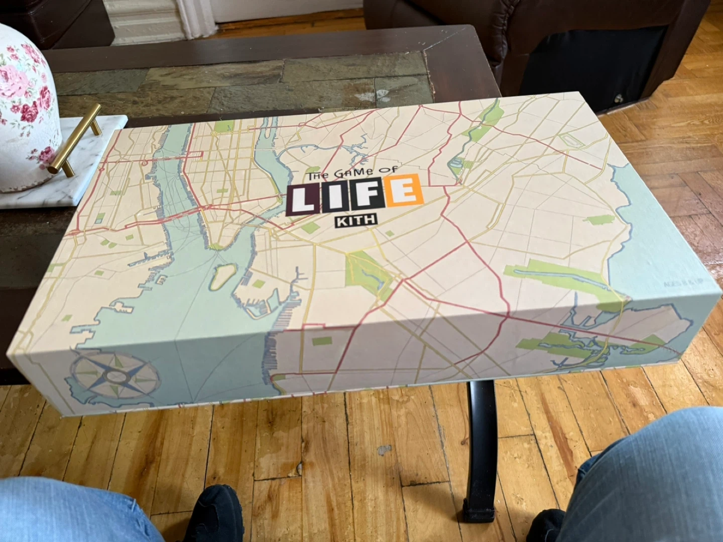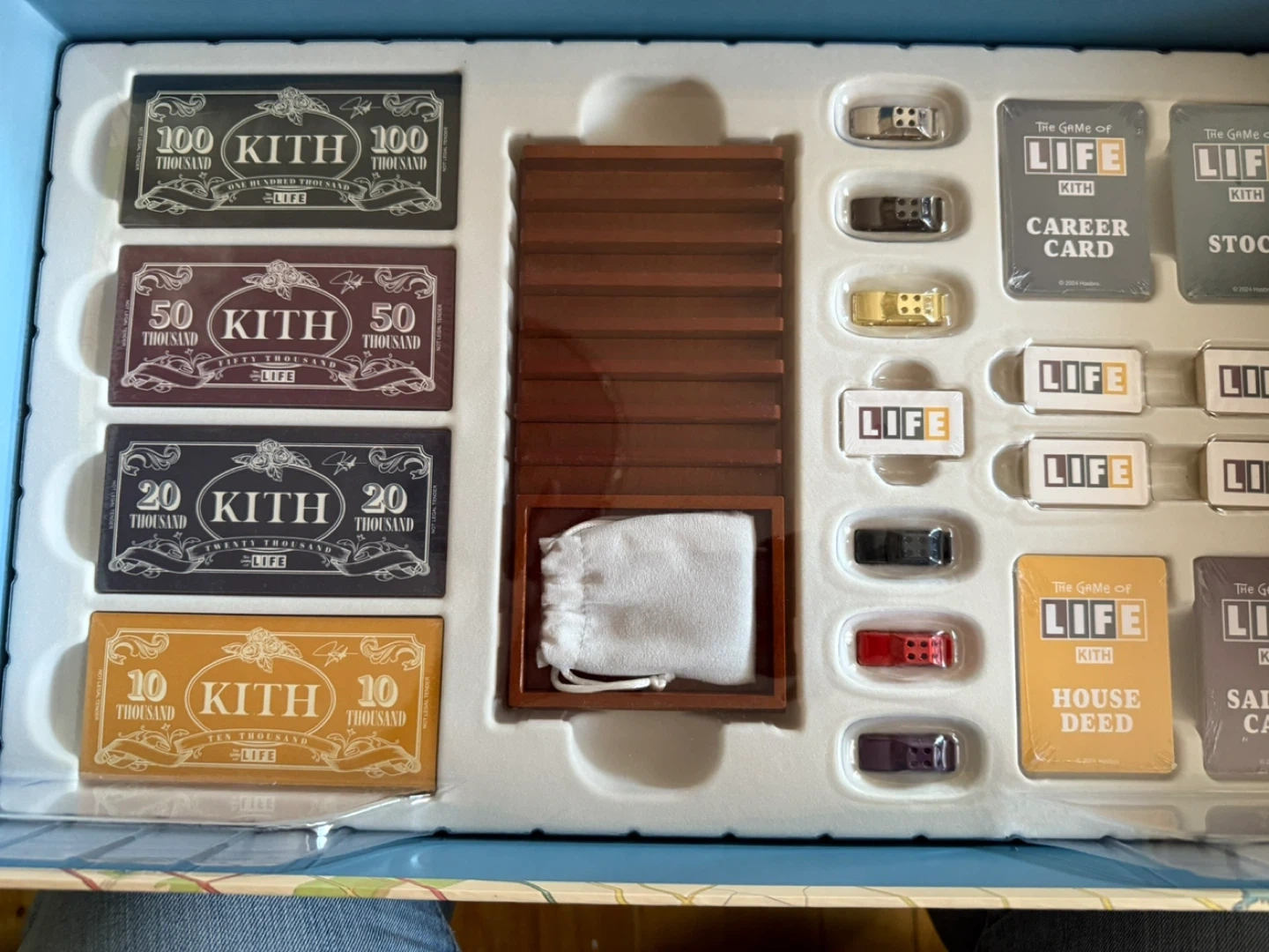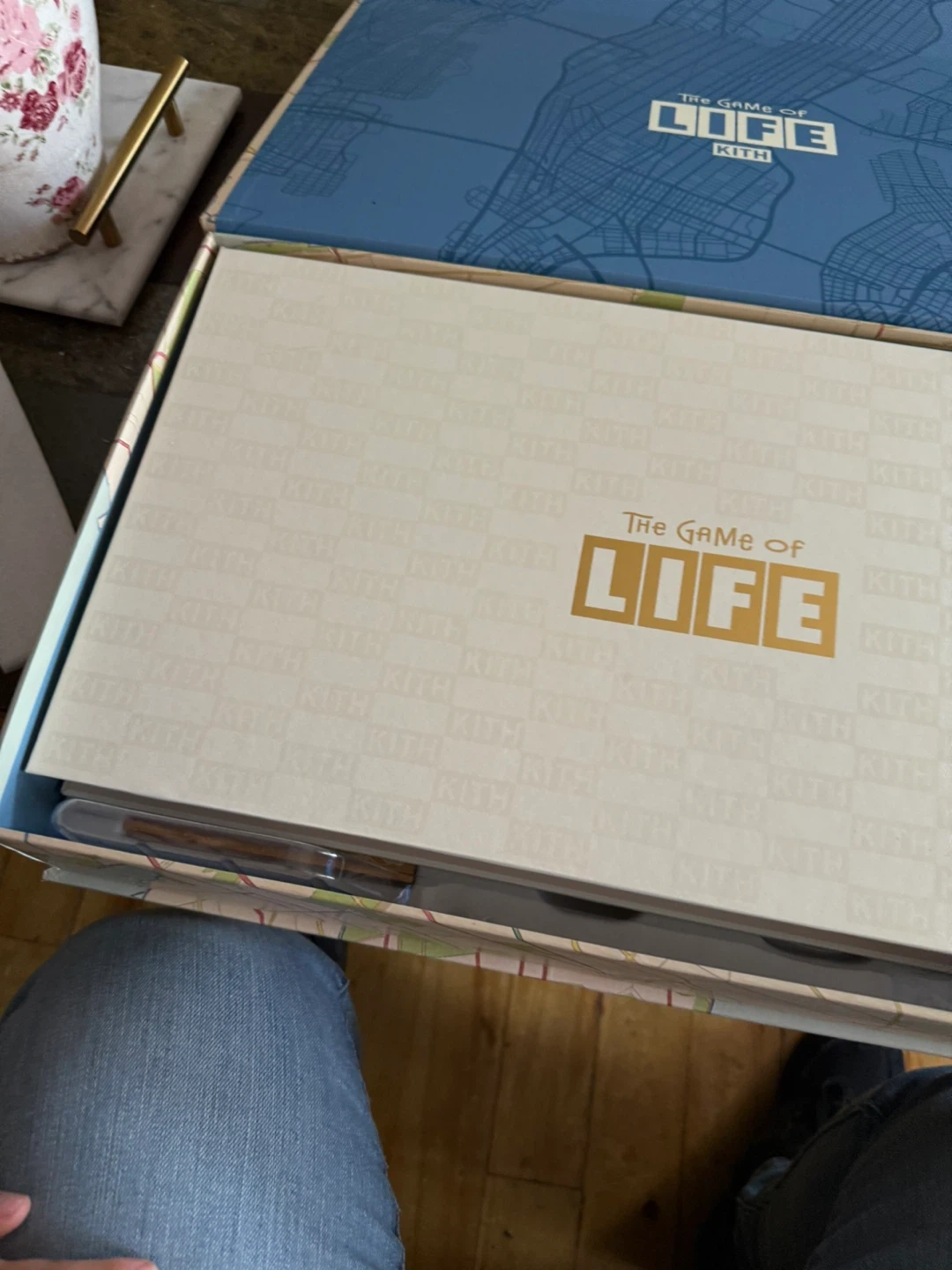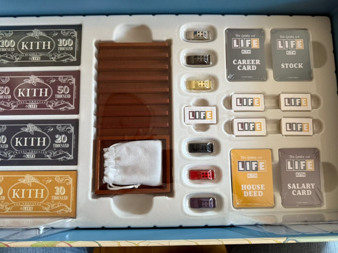 Selling The Game of Life Kith Edition board game! It's a fun twist on the classic game with unique Kith branding and design. Includes all the original components and the box