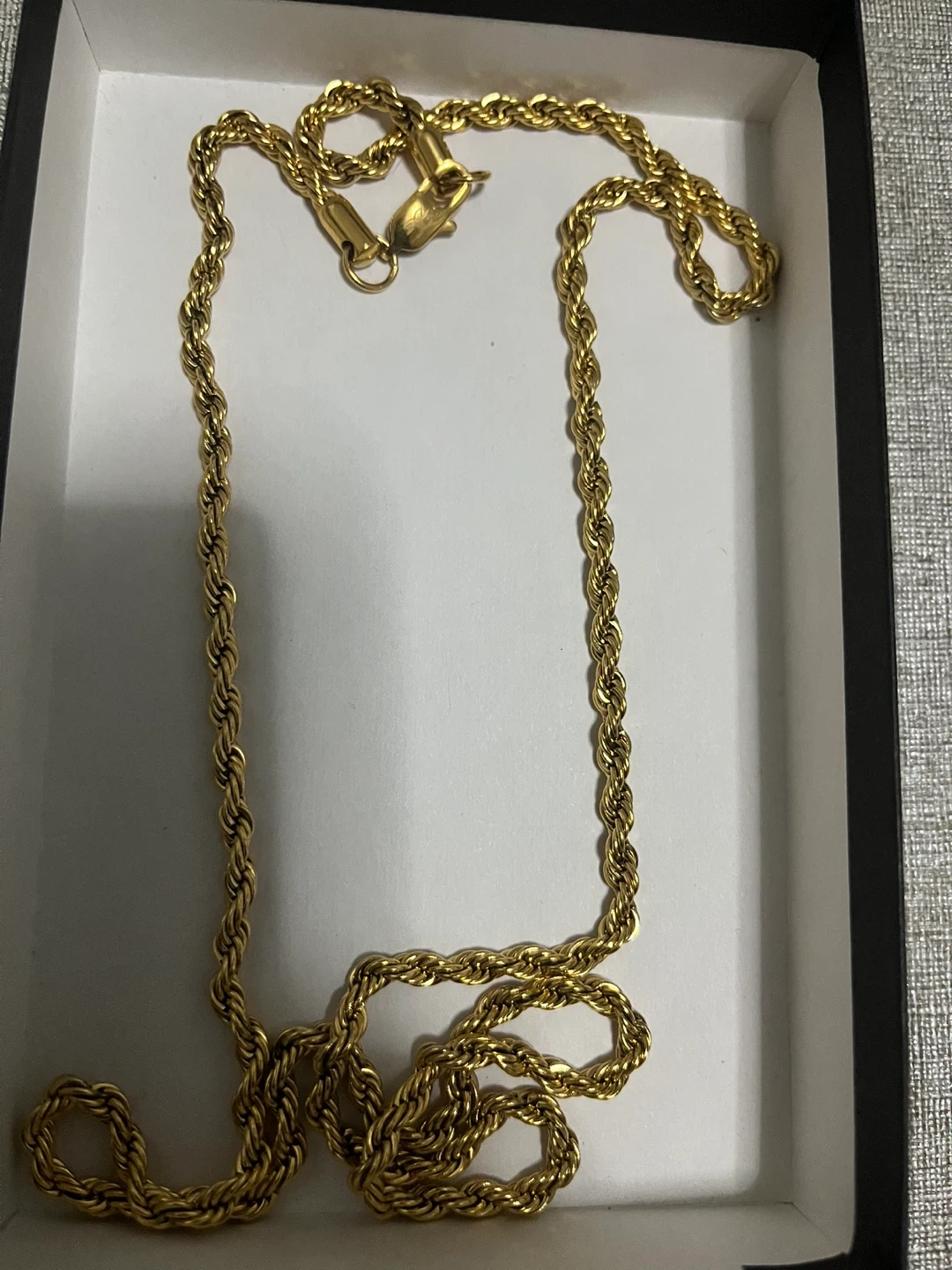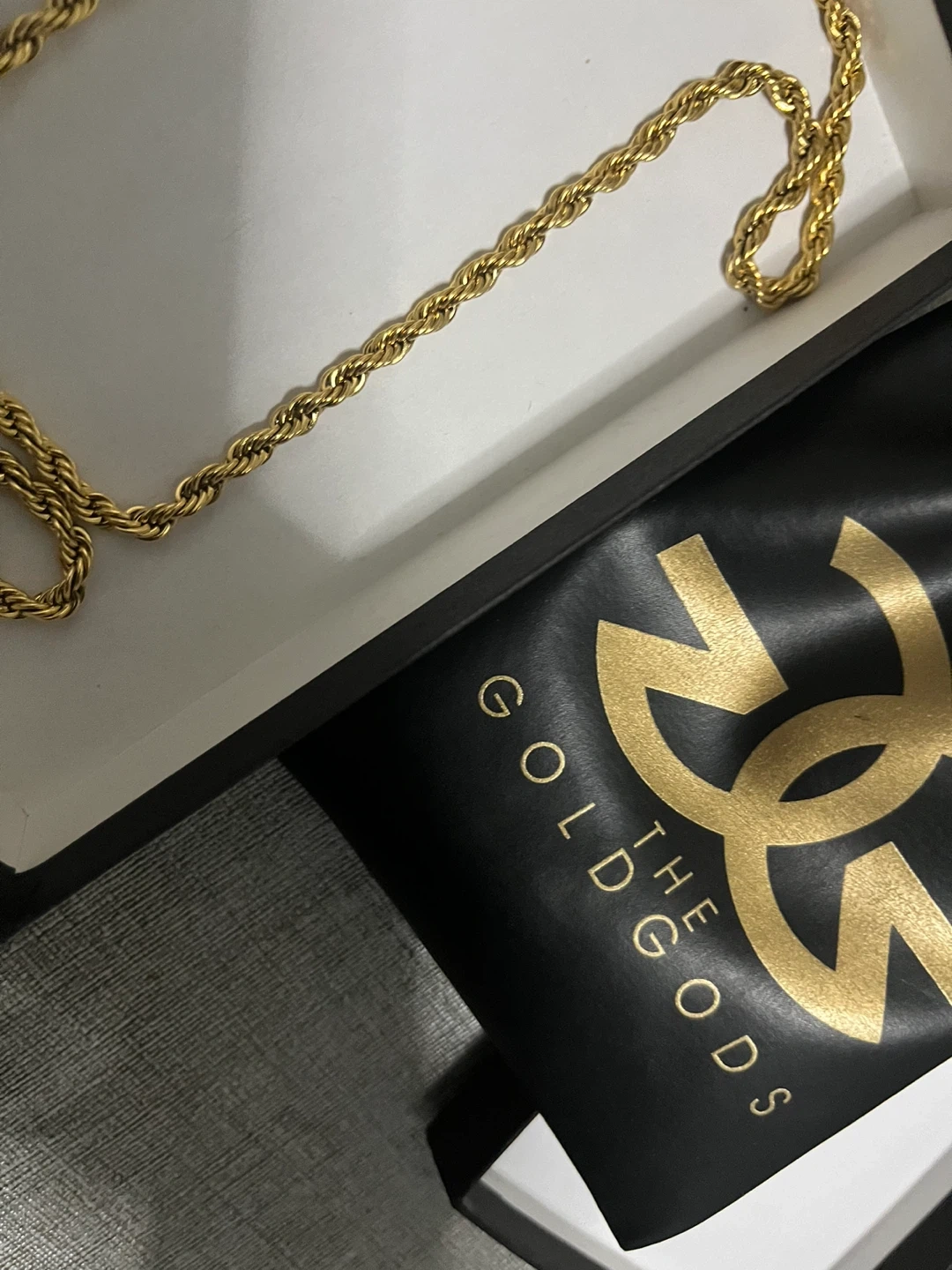 Selling a gold rope chain from The Gold Gods. It's in great condition and comes with the original box and pouch