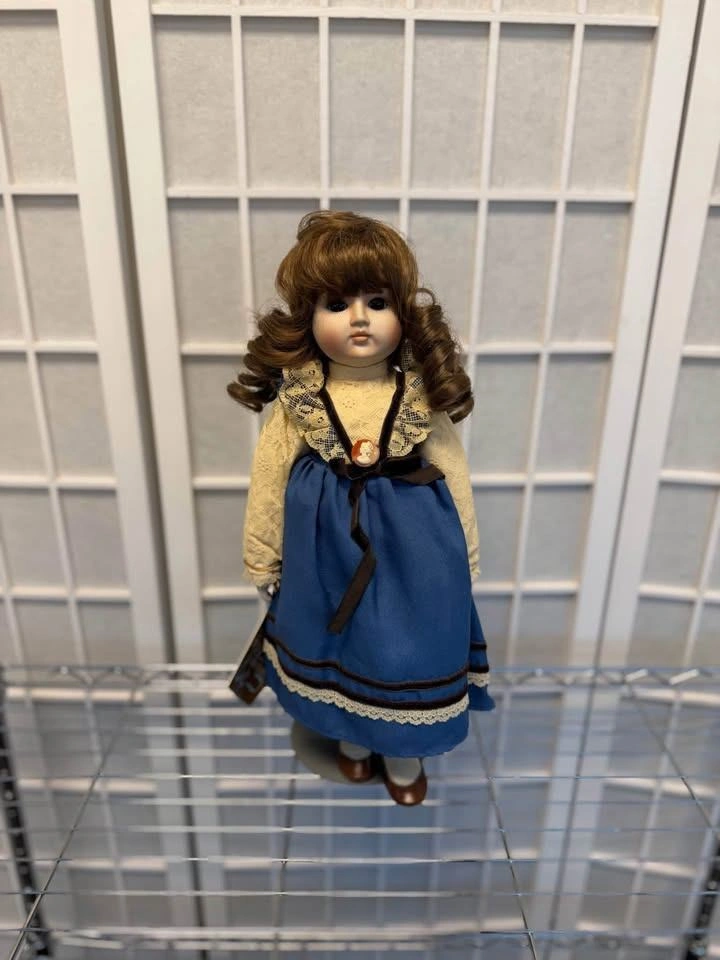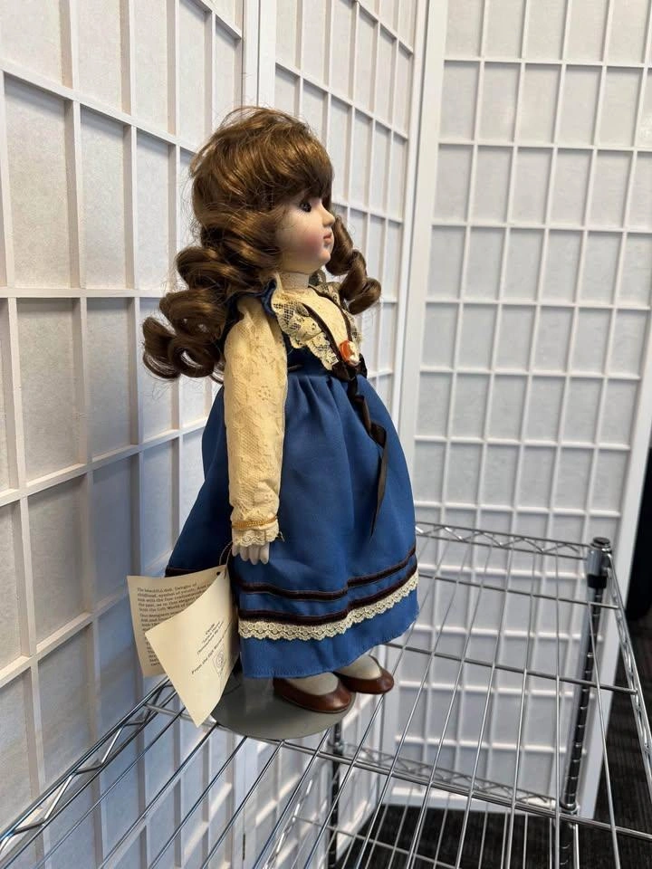 This exquisite porcelain Cecile doll from The Gorham Collection is a beautiful addition to any collectible doll collection. Known for its detailed craftsmanship, this doll captures the timeless elegance and grace that The Gorham brand is famous for. This limited-edition doll is perfect for collectors, those who appreciate fine craftsmanship, or as a gift for any doll enthusiast.