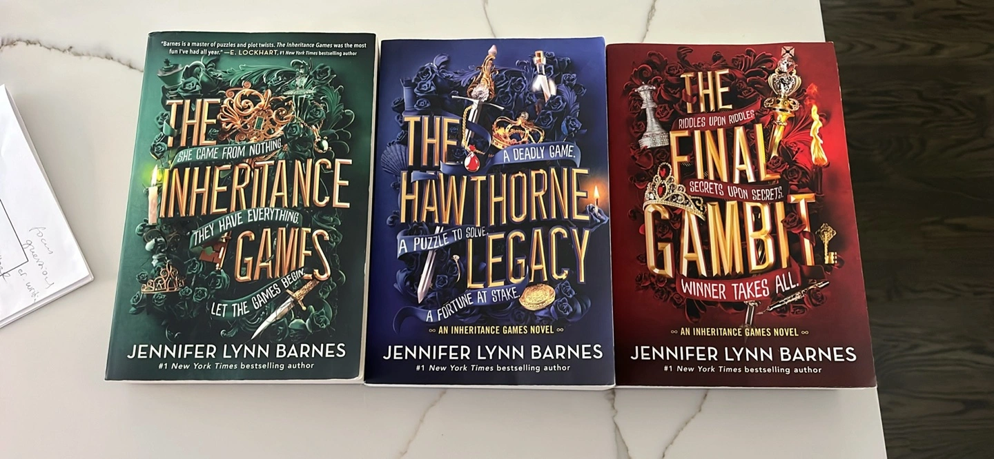Selling the complete Inheritance Games trilogy by Jennifer Lynn Barnes! Includes: The Inheritance Games, The Hawthorne Legacy, and The Final Gambit. Excellent condition!