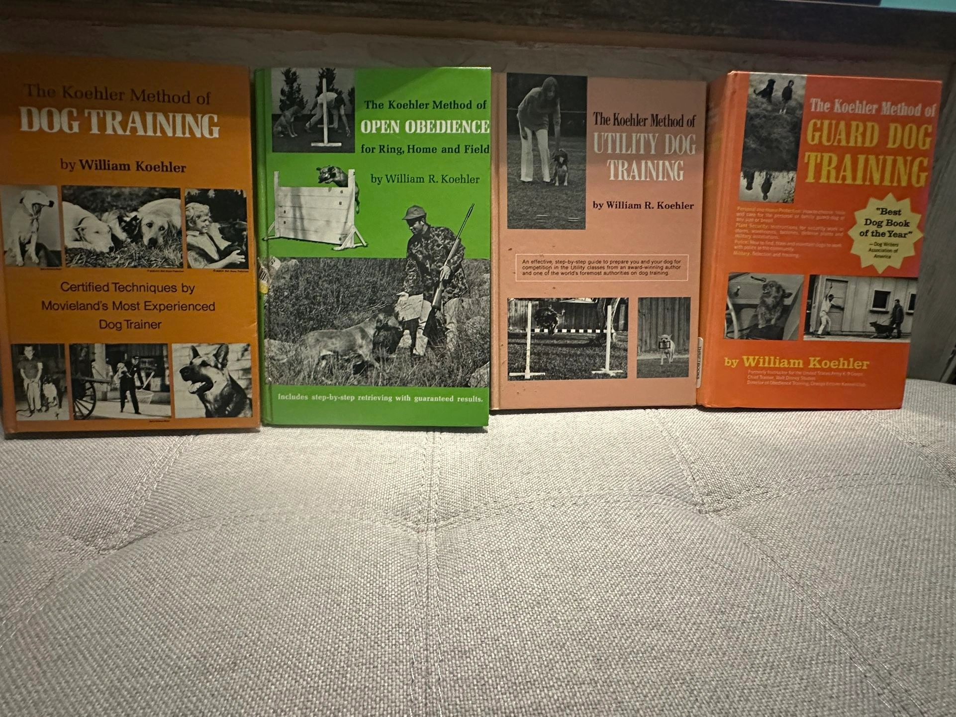 The Koehler method of dog training books all 4: Utility training Dog training Guard dog training Open obedience for ring, home, and field Used, great condition, hard to come by book. Cash only at pick up.