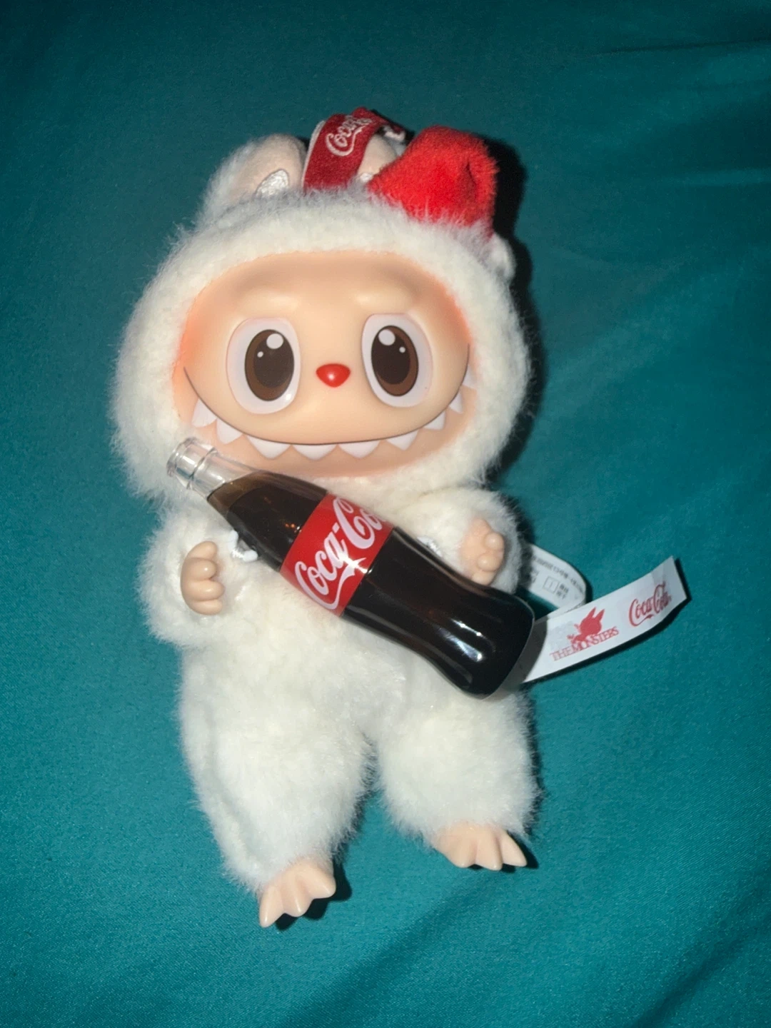 Selling a cute The Monsters Coca-Cola Labubu plush! It's in great condition and ready for a new home. This adorable plush toy features a unique design with Coca-Cola branding, making it a fun collectible item