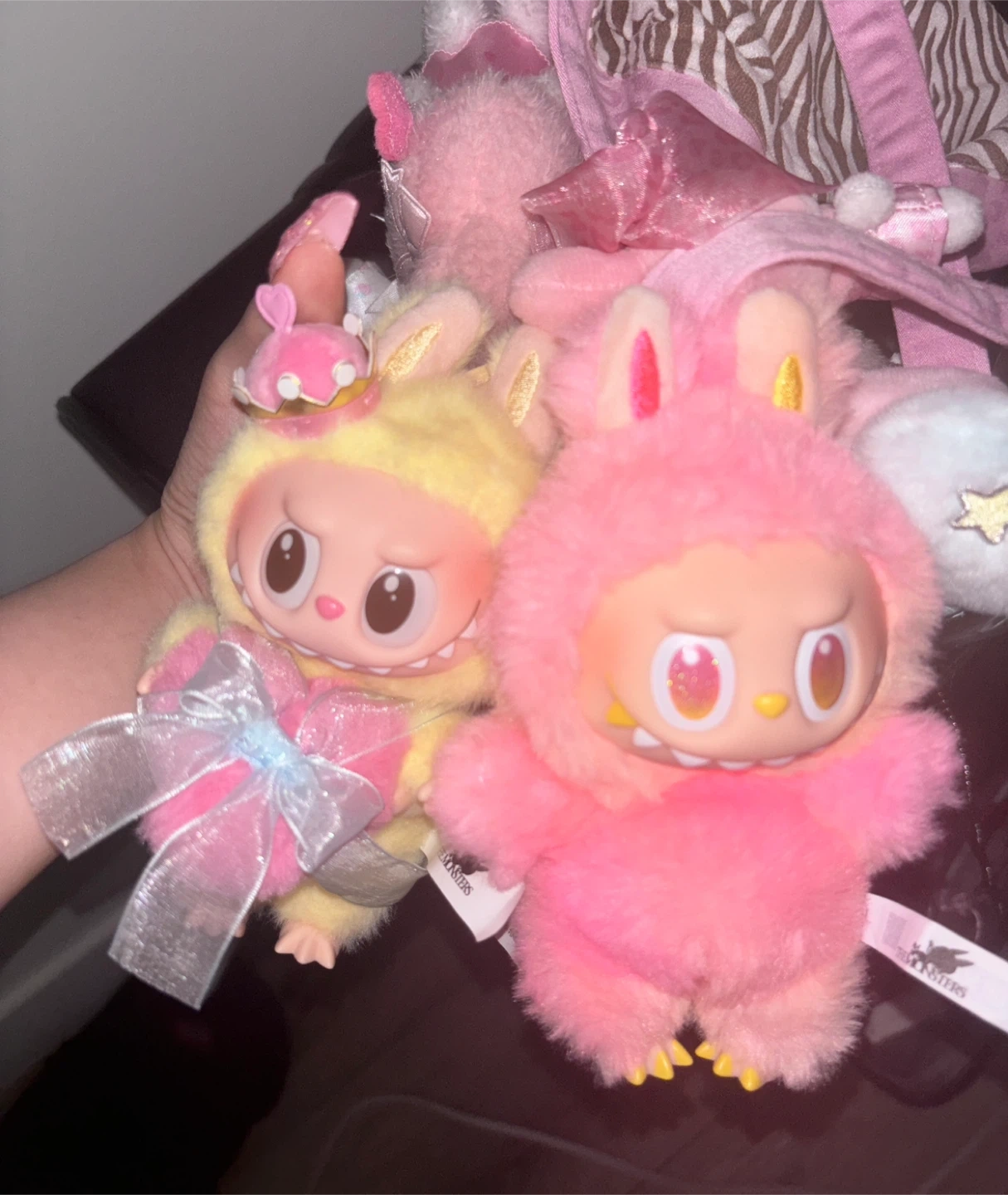 10Selling a cute set of The Monsters Labubu Bunny plushies! One is pink(loyalty) and the other is yellow(check mate) , both in great condition 100% authentic I don't have the box and card anymore Price is firm 2for75 1for45