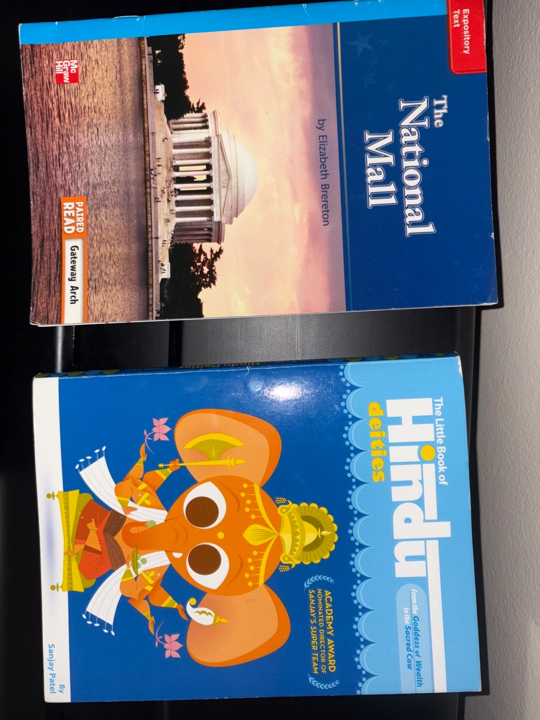 20Selling two books: "The National Mall" by Elizabeth Brereton and "The Little Book of Hindu Deities" by Sanjay Patel