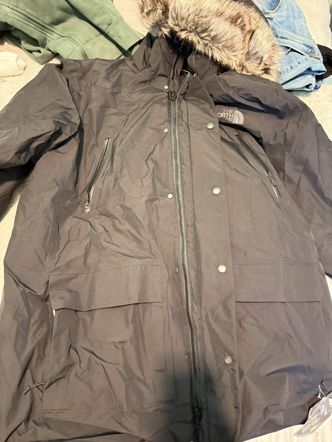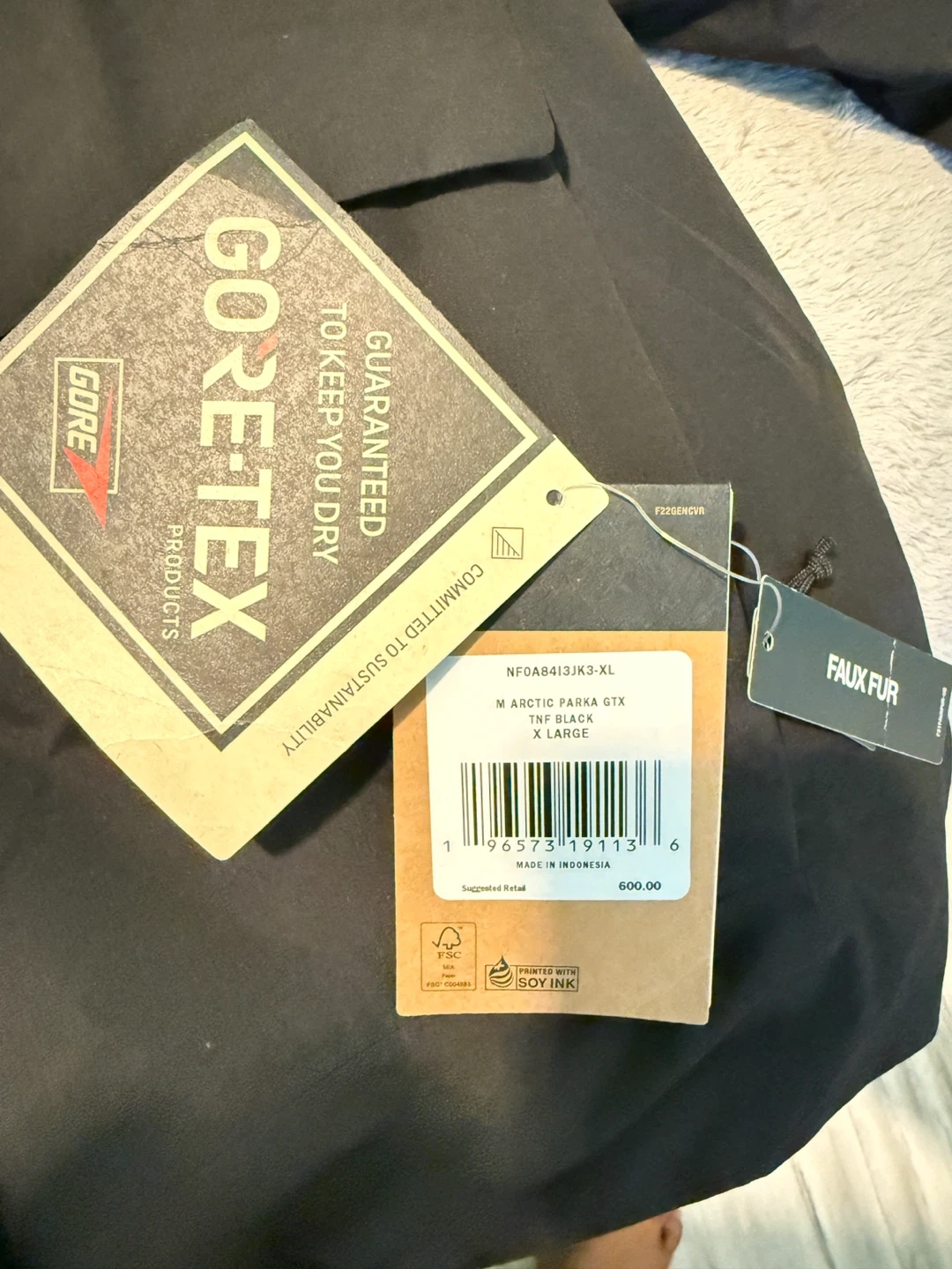70Selling a The North Face Arctic Parka GTX in size XL. It's a black/taupe color and has a faux fur trim on the hood. It's made with Gore-Tex material to keep you dry. Originally retailed for $600