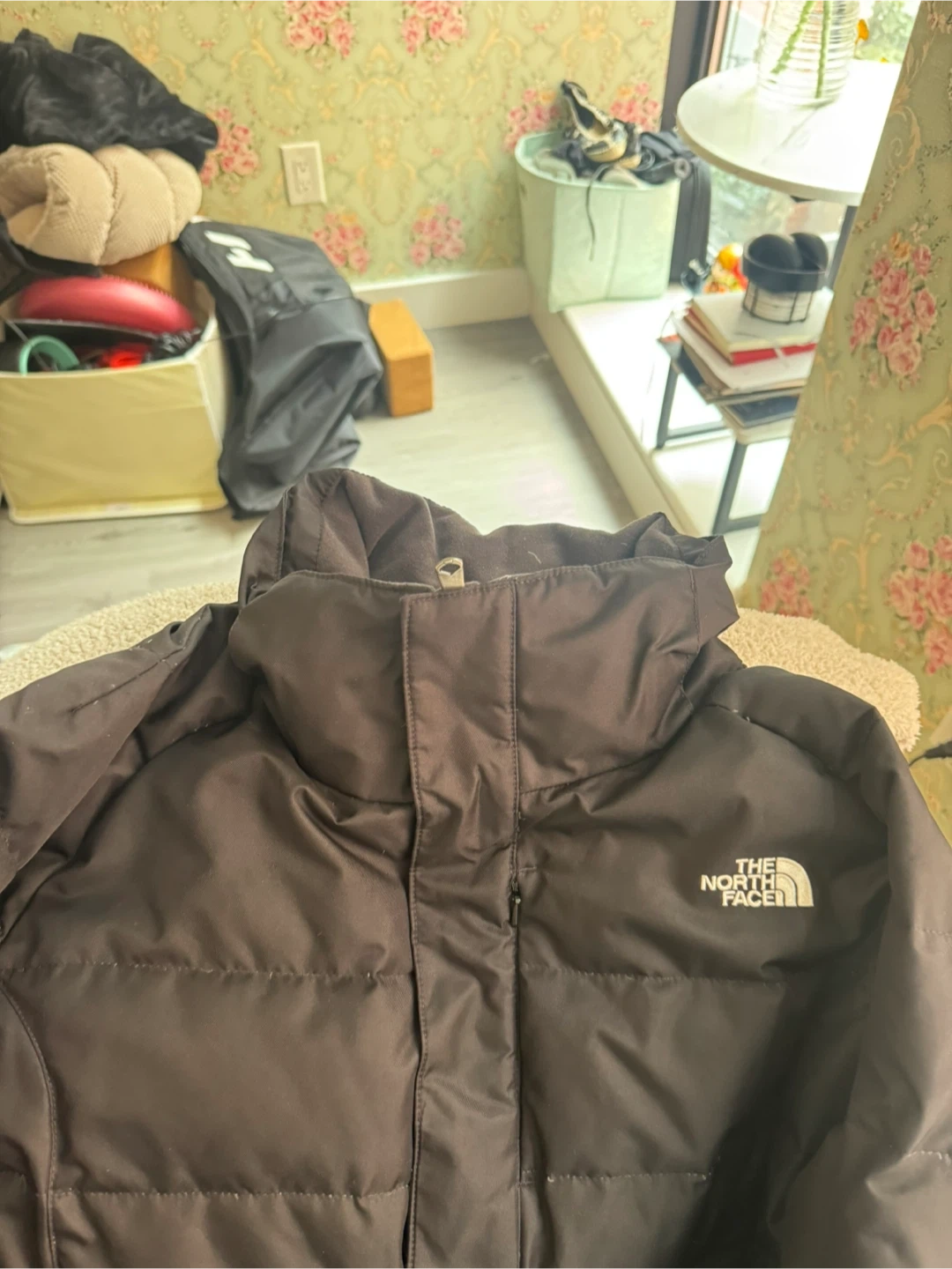 Selling a black puffer jacket from The North Face. It's in great condition and ready to keep you warm! Features a cozy design and the classic North Face logo. bought for $220