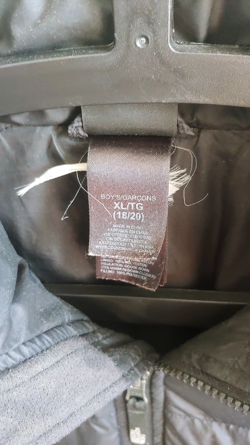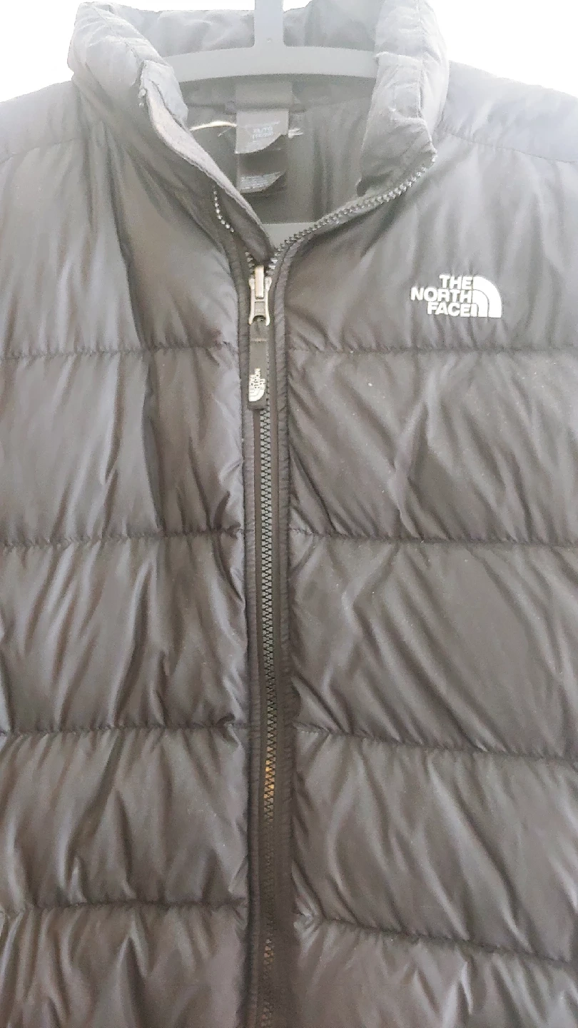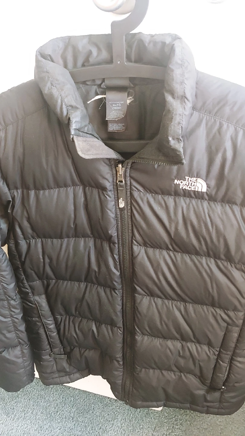 Selling a black puffer jacket from The North Face. It's a boys size XL, which is equivalent to 18/20. Great for staying warm!