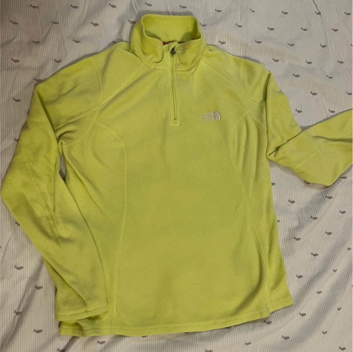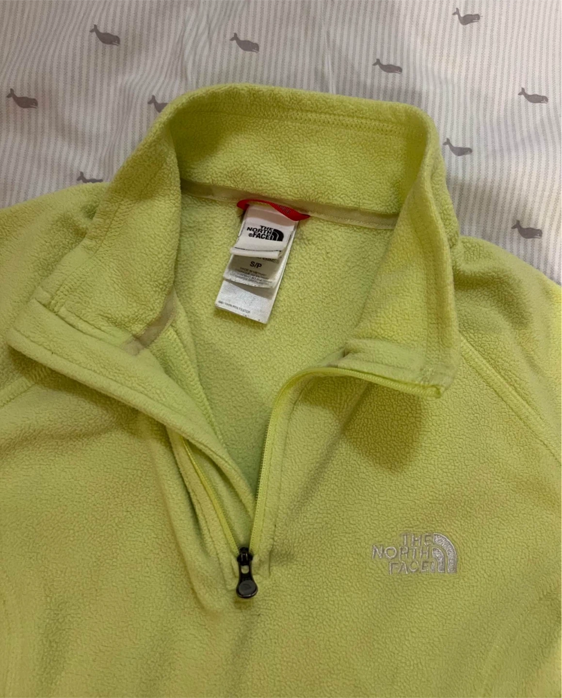 121Cozy up in this The North Face fleece pullover! It's a vibrant yellow-green color and a size small. Perfect for layering or wearing on its own for a pop of color and warmth