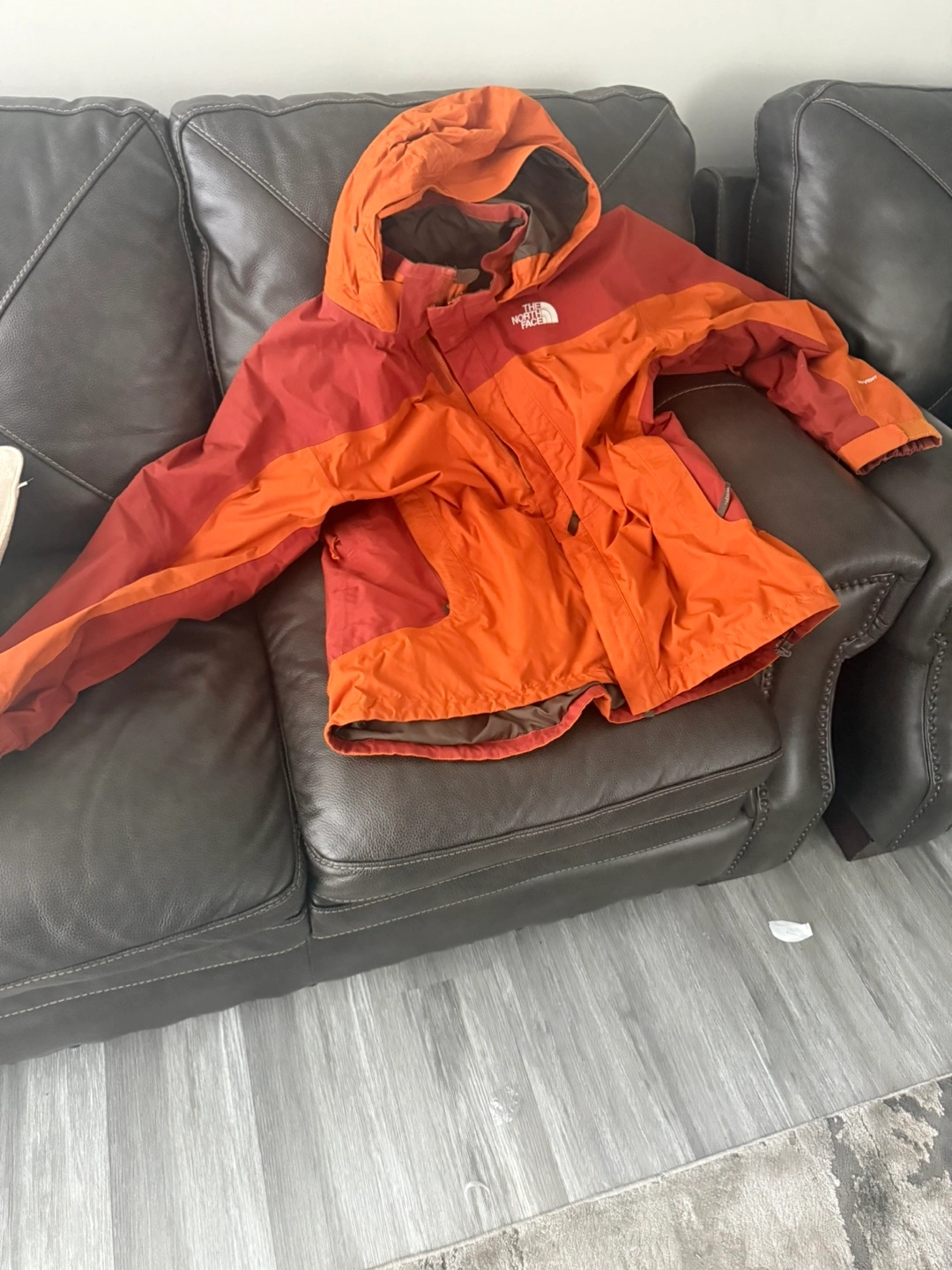10Selling a The North Face HyVent jacket in orange and red. It's a men's size XXL. This jacket is in great condition and ready for a new home!