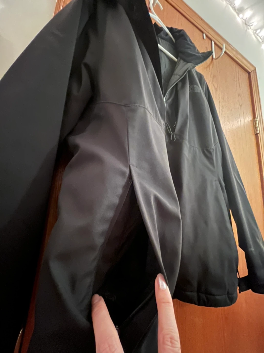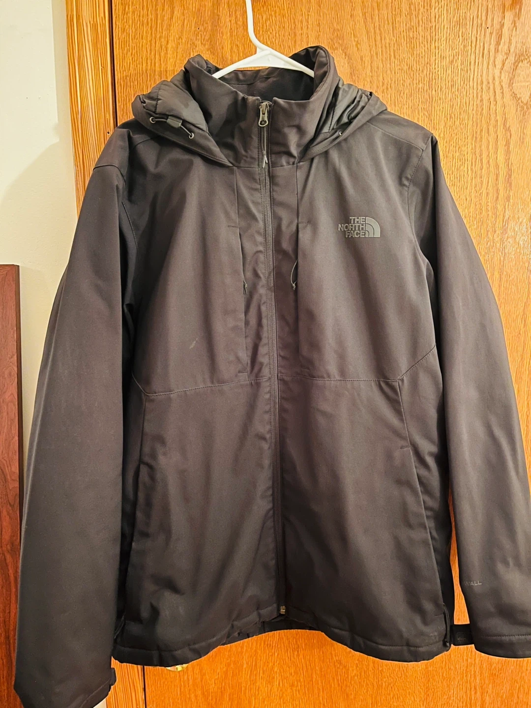 Selling a men's The North Face jacket in size large, color black. It's in great condition. Super warm, waterproof, it has many pockets, and a nice hoodie to prevent the winds and snows.