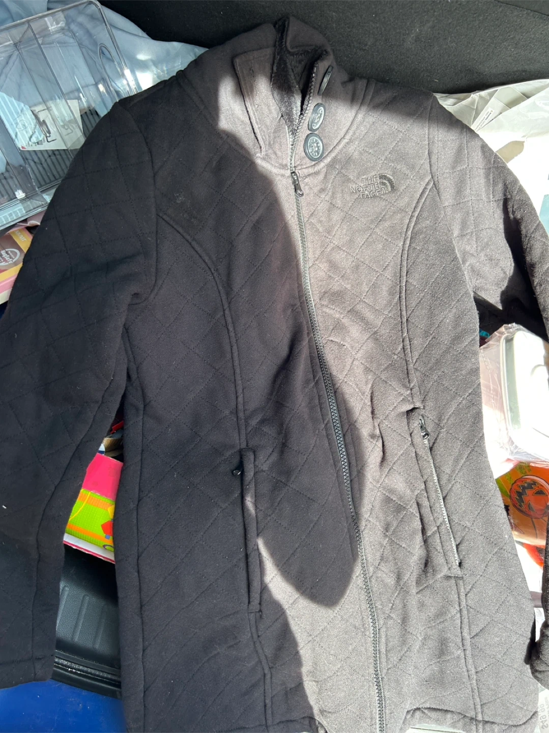 Selling a The North Face quilted jacket! It's in good condition and ready for a new home. The jacket features a full zipper and a stylish quilted pattern. Perfect for staying warm and looking great!