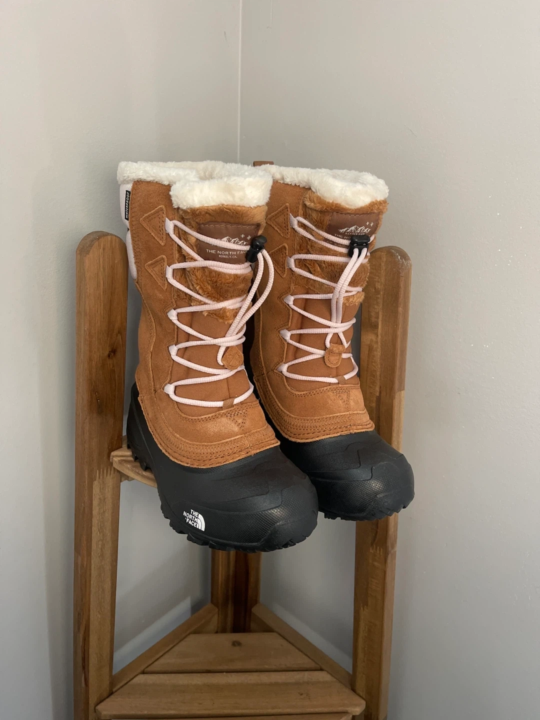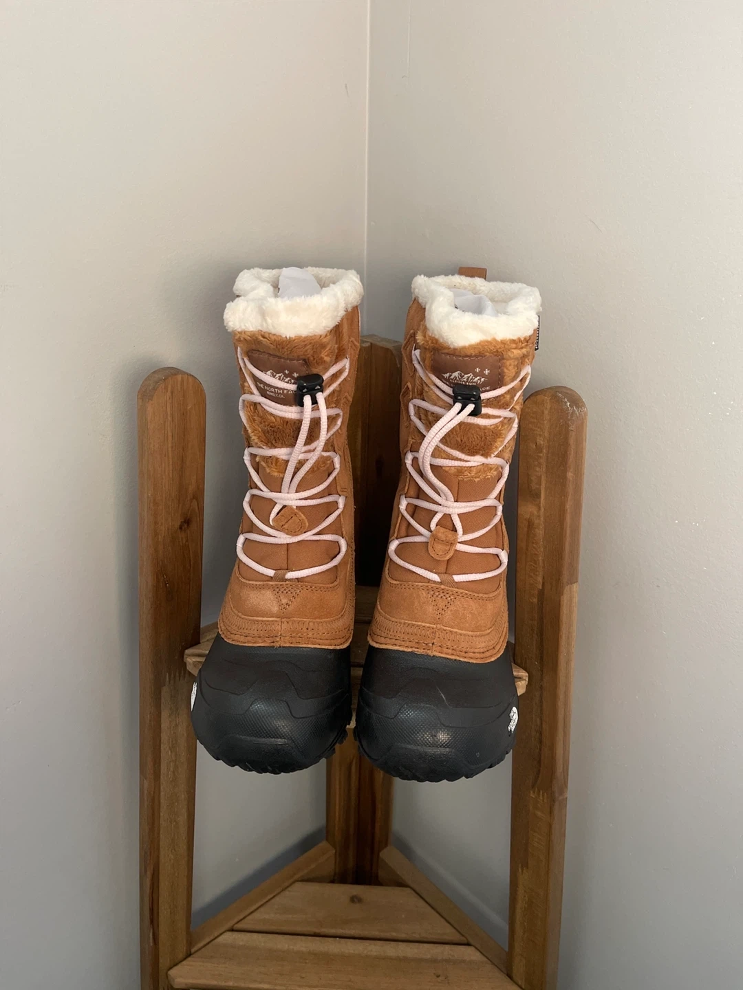 Selling a pair of The North Face Youth Shellista Lace IV boots in size 3 US. The color is Toasted Brown/Lavender Fog. They are in great condition and come with the original box
