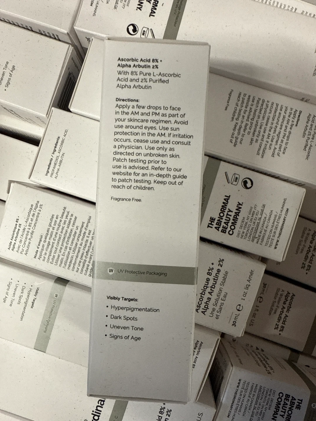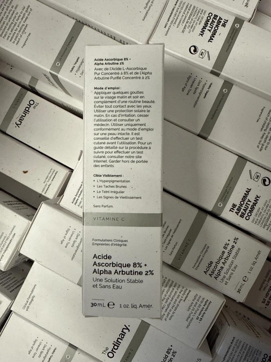 This is $10 for 1. Multiple available! See my other listings for additional the ordinary skincare. Get your hands on The Ordinary Ascorbic Acid 8% + Alpha Arbutin 2%, a water-free, stable solution for your skincare needs! This serum contains 8% pure L-Ascorbic Acid and 2% Purified Alpha Arbutin, targeting dark spots, uneven skin tone, and signs of aging. Perfect for incorporating into your daily AM and PM skincare routine!