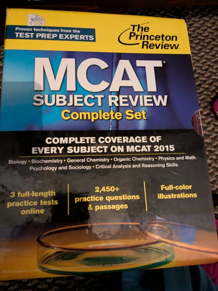 151Selling The Princeton Review MCAT Subject Review Complete Set. It includes the following books: - Biology and Biochemistry Review - Organic Chemistry Review - Physics and Math Review - General Chemistry Review - Critical Analysis and Reasoning Skills - Psychology and Sociology Review no marks, very good condition
