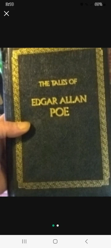 65Selling a copy of "The Tales of Edgar Allan Poe". It has a black cover with gold lettering and decorative gold trim. Great for any fan of classic horror!
