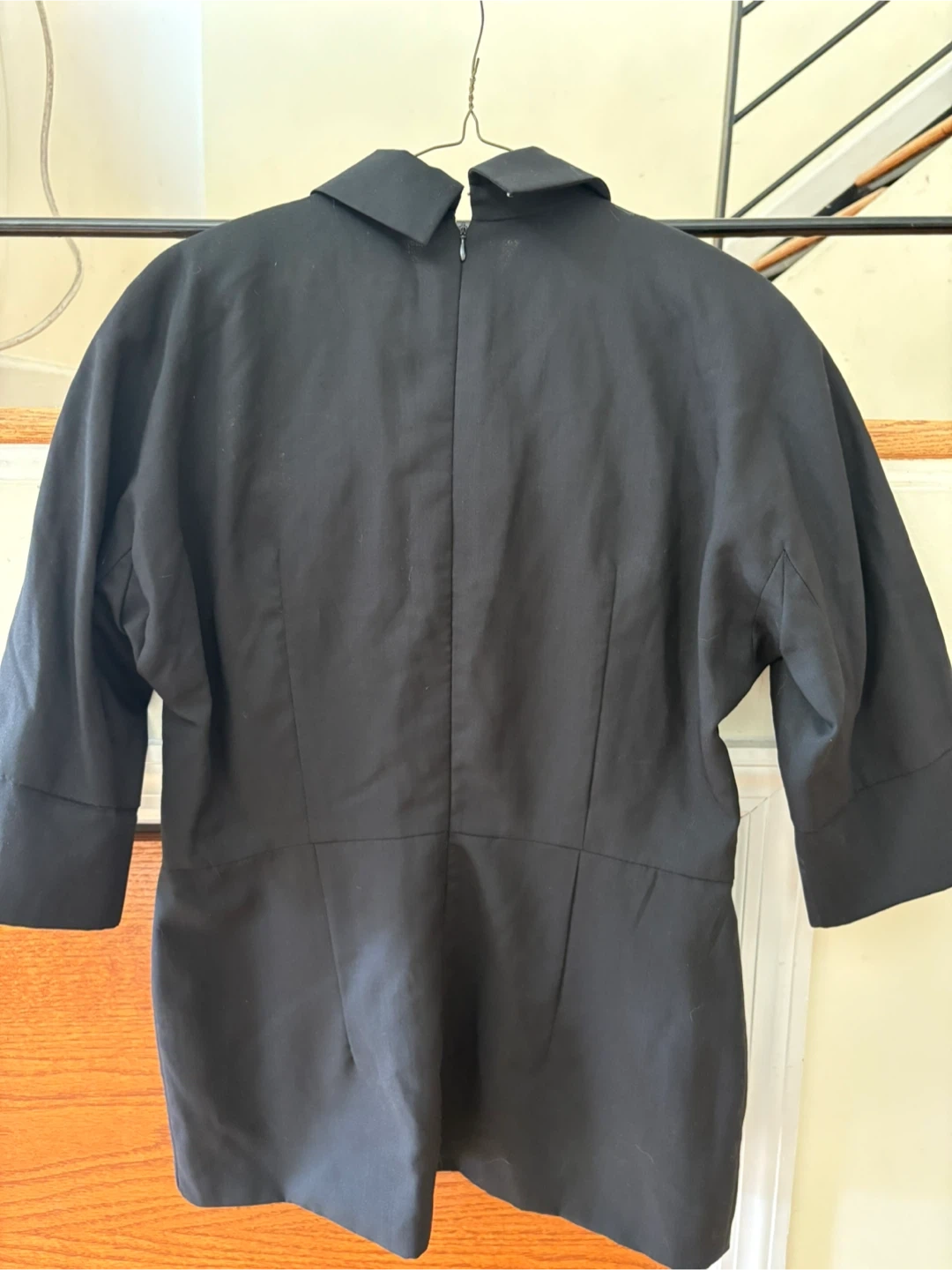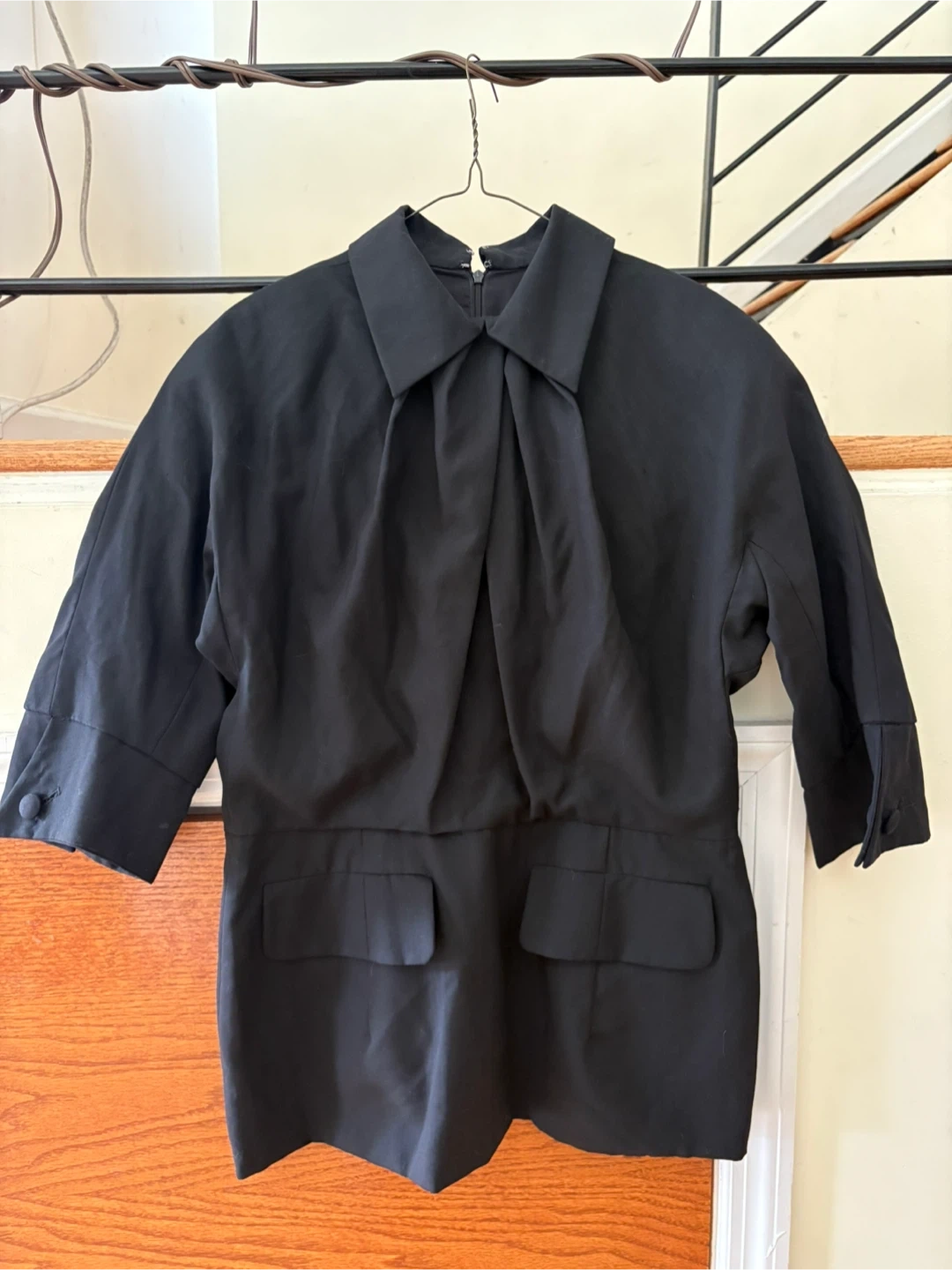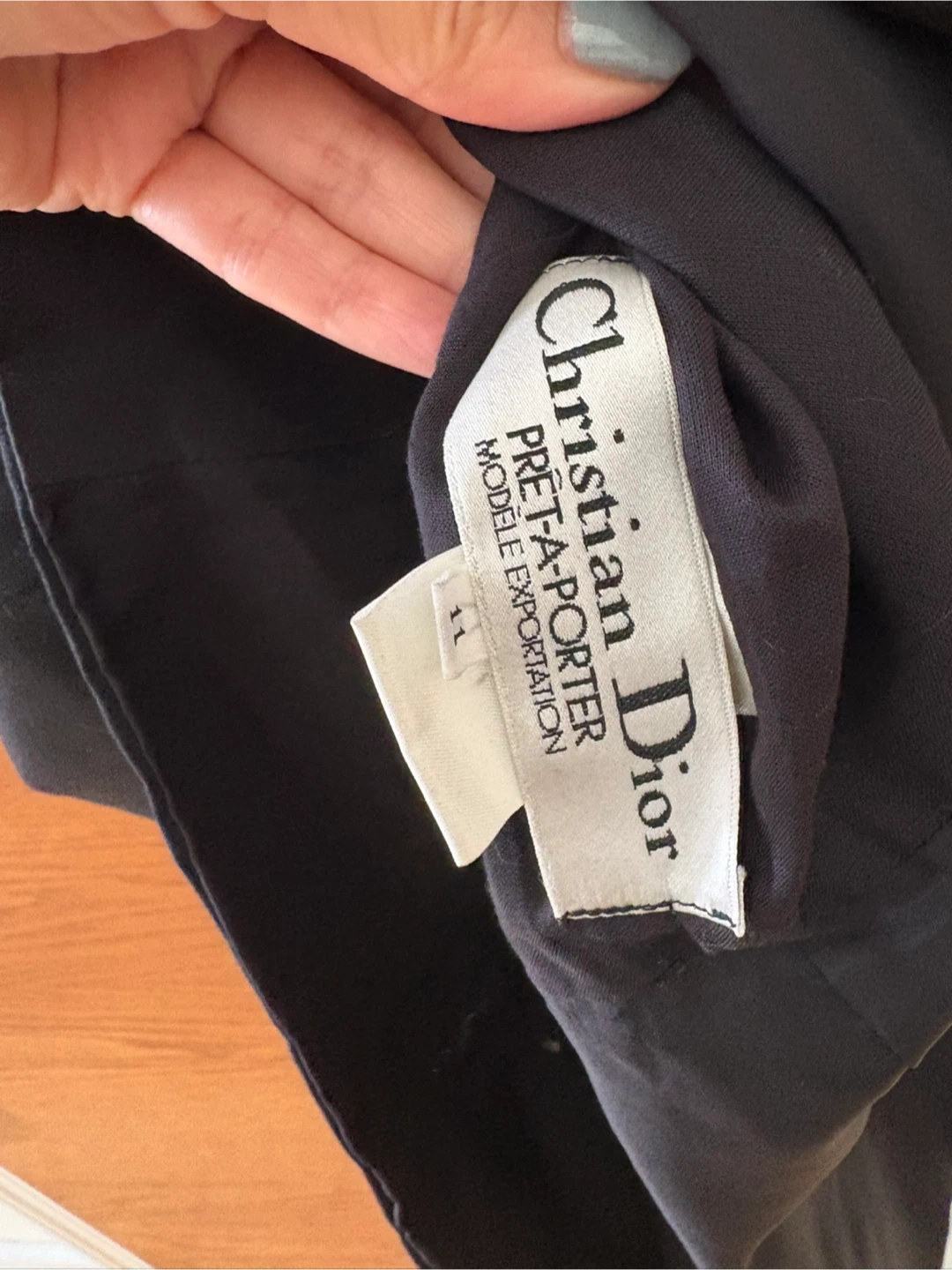 The vintage Christian Dior John Galliano Blouse from FW 2002 is a classic and stylish addition to any woman's wardrobe. Made by renowned designer John Galliano, this black blouse is a size small and features a regular fit. With its timeless design and high-quality construction, this top is perfect for both casual and formal occasions, adding a touch of luxury and sophistication to any outfit. Fully lined Two functional pockets. Total length 28” Armpit to armpit 21”