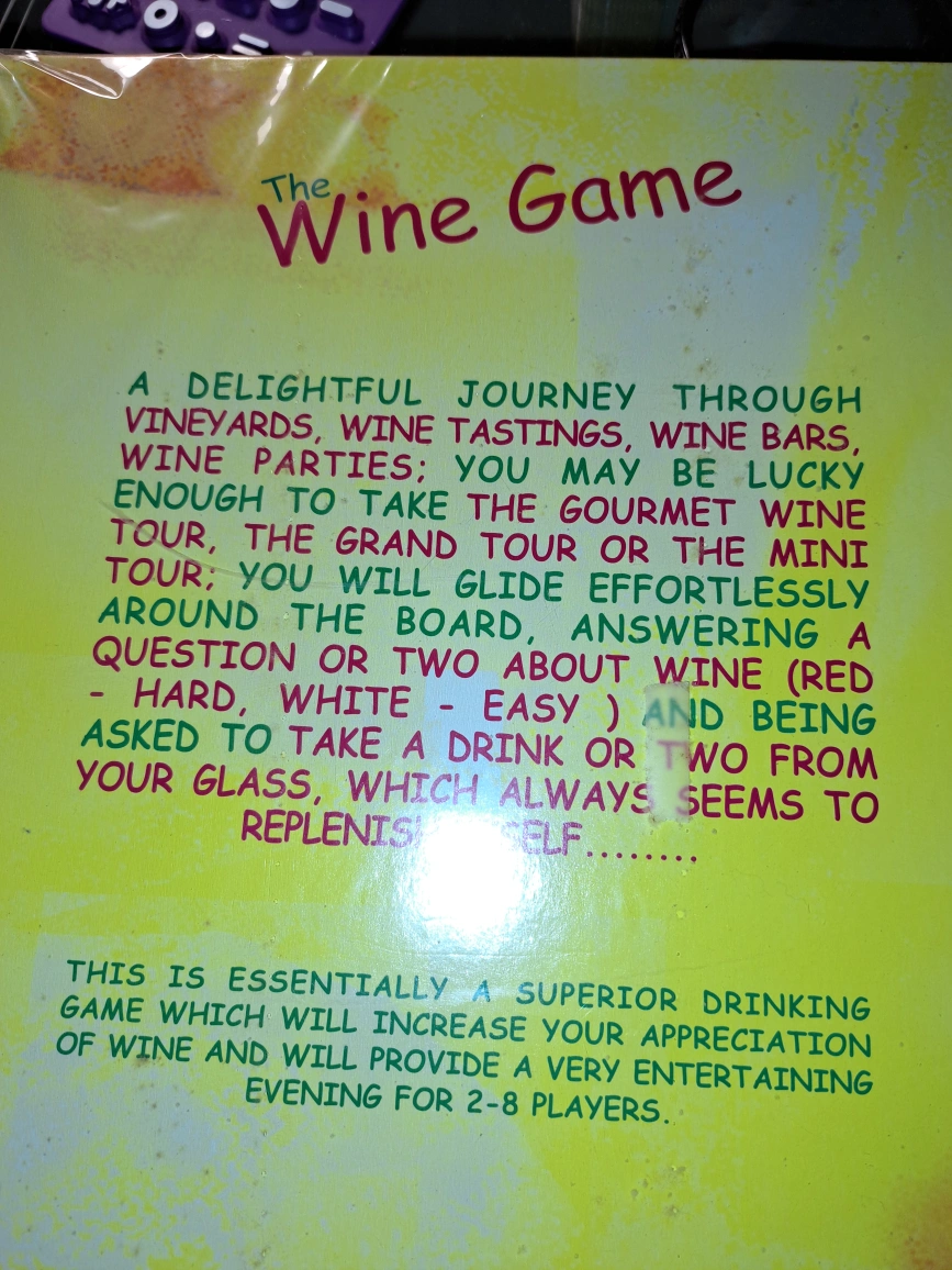 10Fun board game for wine lovers. Travel the board, answer questions, drink wine, and increase your wine knowledge. For 2-8 players. A superior drinking game.