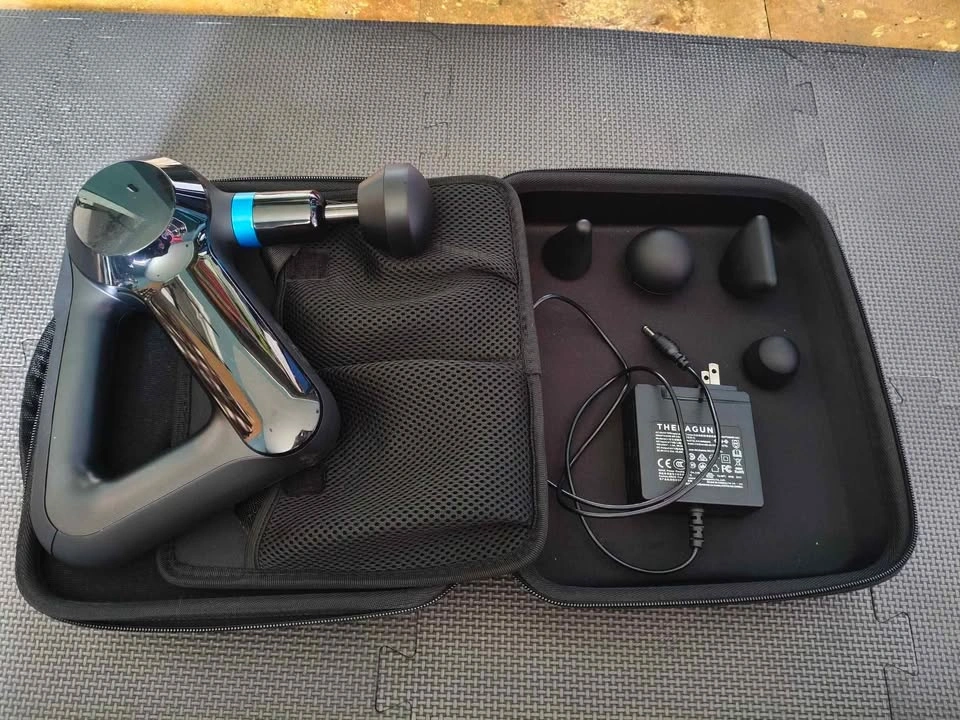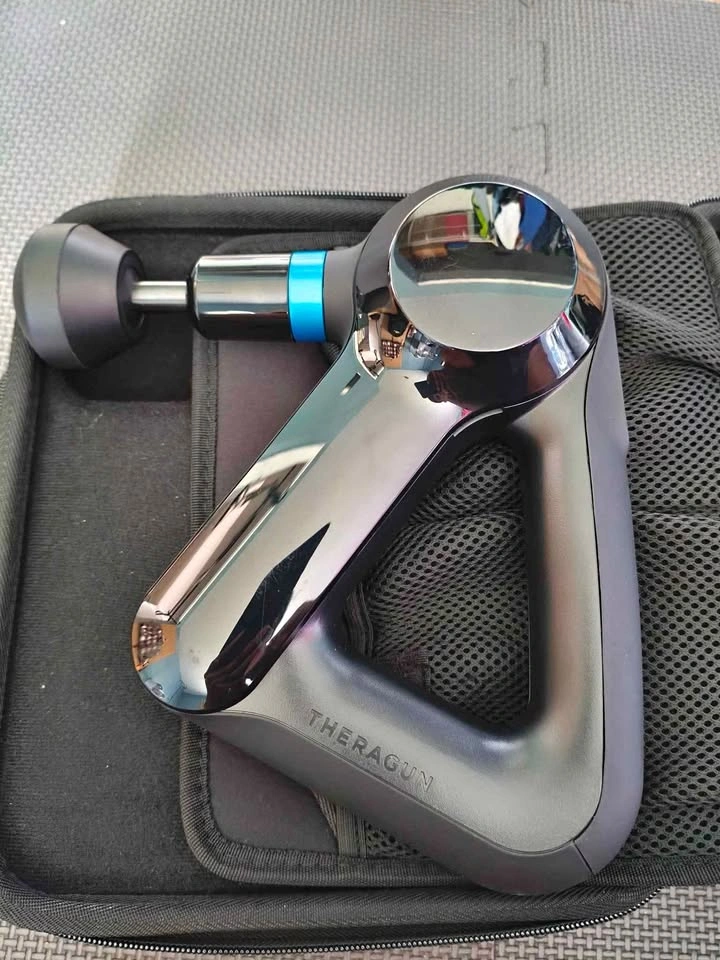 15Lightly used TheraGun Elite with all accessories and charger and only minor scuffing. Works as intended.