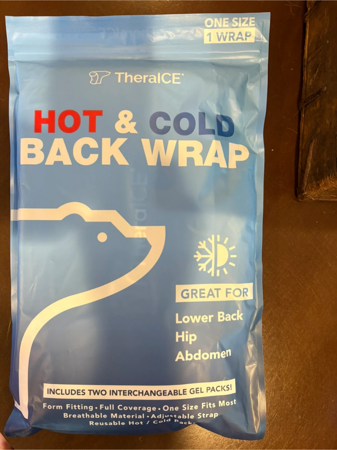 I have a new TheraICE Hot & Cold Back Wrap for sale! It's great for lower back, hip, and abdomen. Includes two interchangeable gel packs. It features form fitting, full coverage, breathable material, and an adjustable strap. One size fits most and is reusable for hot/cold packs. My wife purchased two of them and I only need one. This is brand new and unopened.