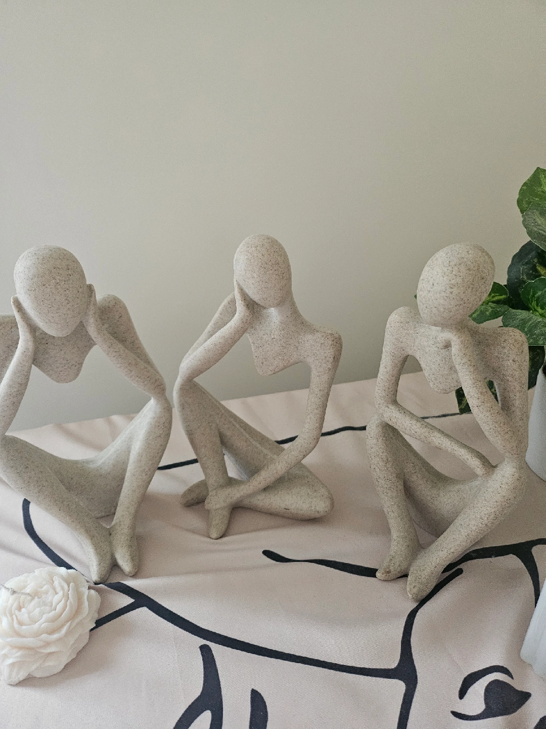 65Selling a set of three 'Thinking Man' statues. They're a nice neutral color and would look great in any room. and + free plant.