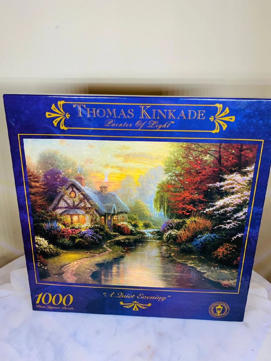 26Selling a Thomas Kinkade jigsaw puzzle, "A Quiet Evening" edition. It's a 1000-piece puzzle, perfect for a relaxing activity!