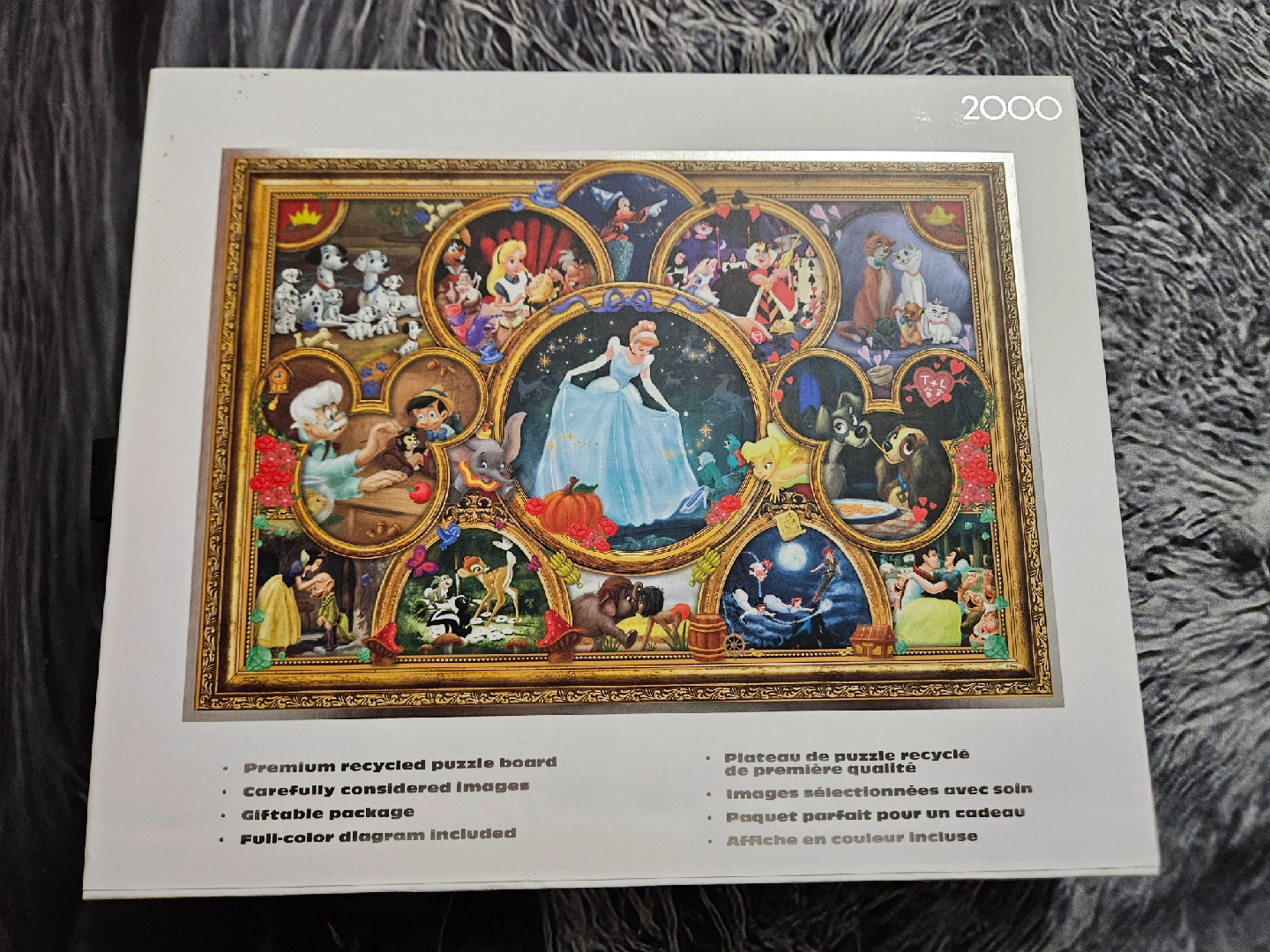 Selling a Thomas Kinkade Disney Cinderella puzzle with 2000 pieces! It features premium recycled puzzle board and carefully considered images. The package is giftable and includes a full-color diagram PICK UP ONLY