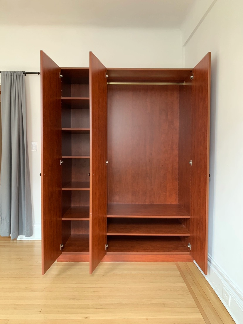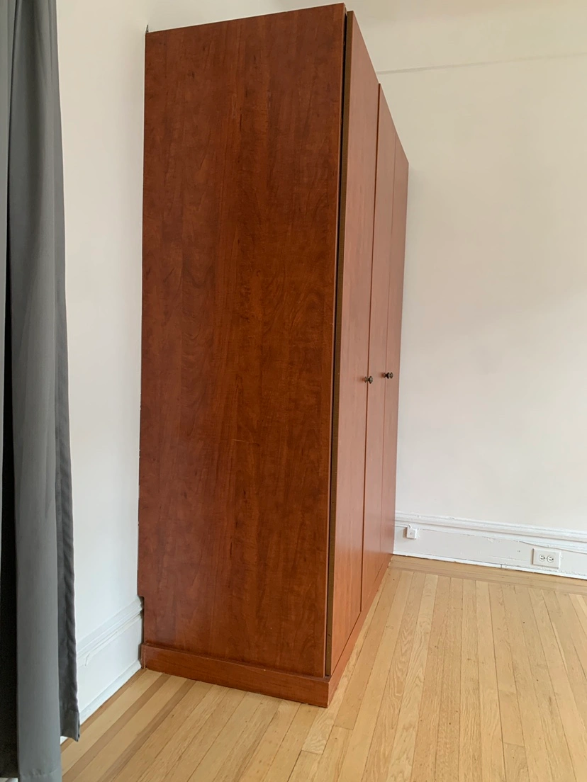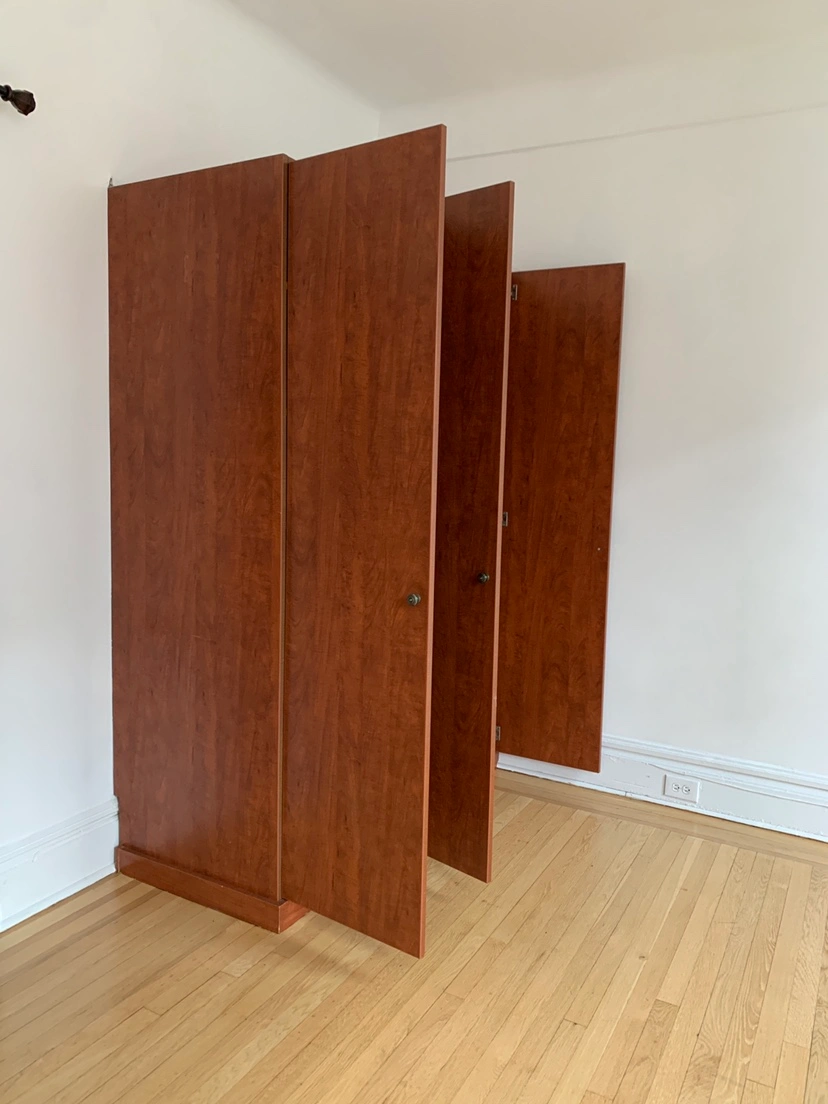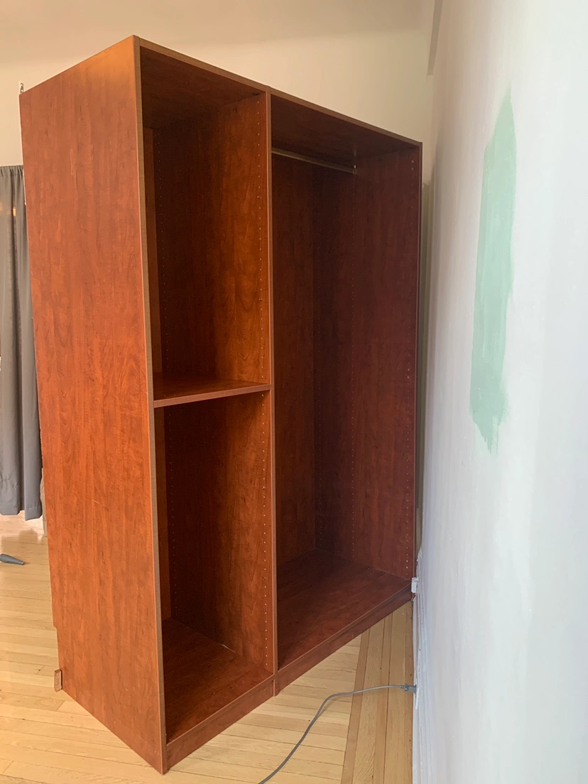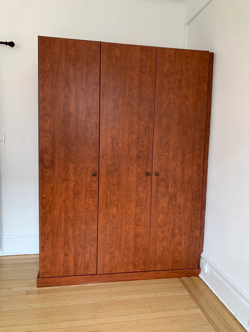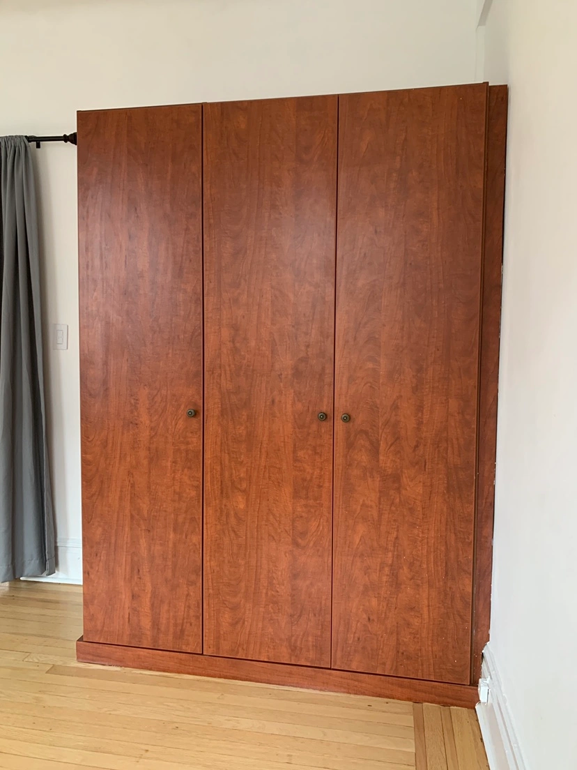 37We have a nice quality 3-door, 2 slides, 6 girds, 2 wide open hanging area closet ready for pick up by estimated end of August in Jackson height near 82 street! Sized 56 x 80 x 26. It was glued to two walls and ground so there will be scratches on the back side of this closet. Please read: YOU MUST pick it up and move it by yourself in AS-IS condition. We won’t be able to unassemble the whole thing for you, but you will pick it up as is. DM if you’re interested!