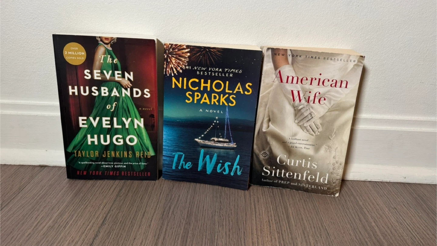 Selling a set of three popular novels! You'll get "The Seven Husbands of Evelyn Hugo" by Taylor Jenkins Reid, "The Wish" by Nicholas Sparks, and "American Wife" by Curtis Sittenfeld