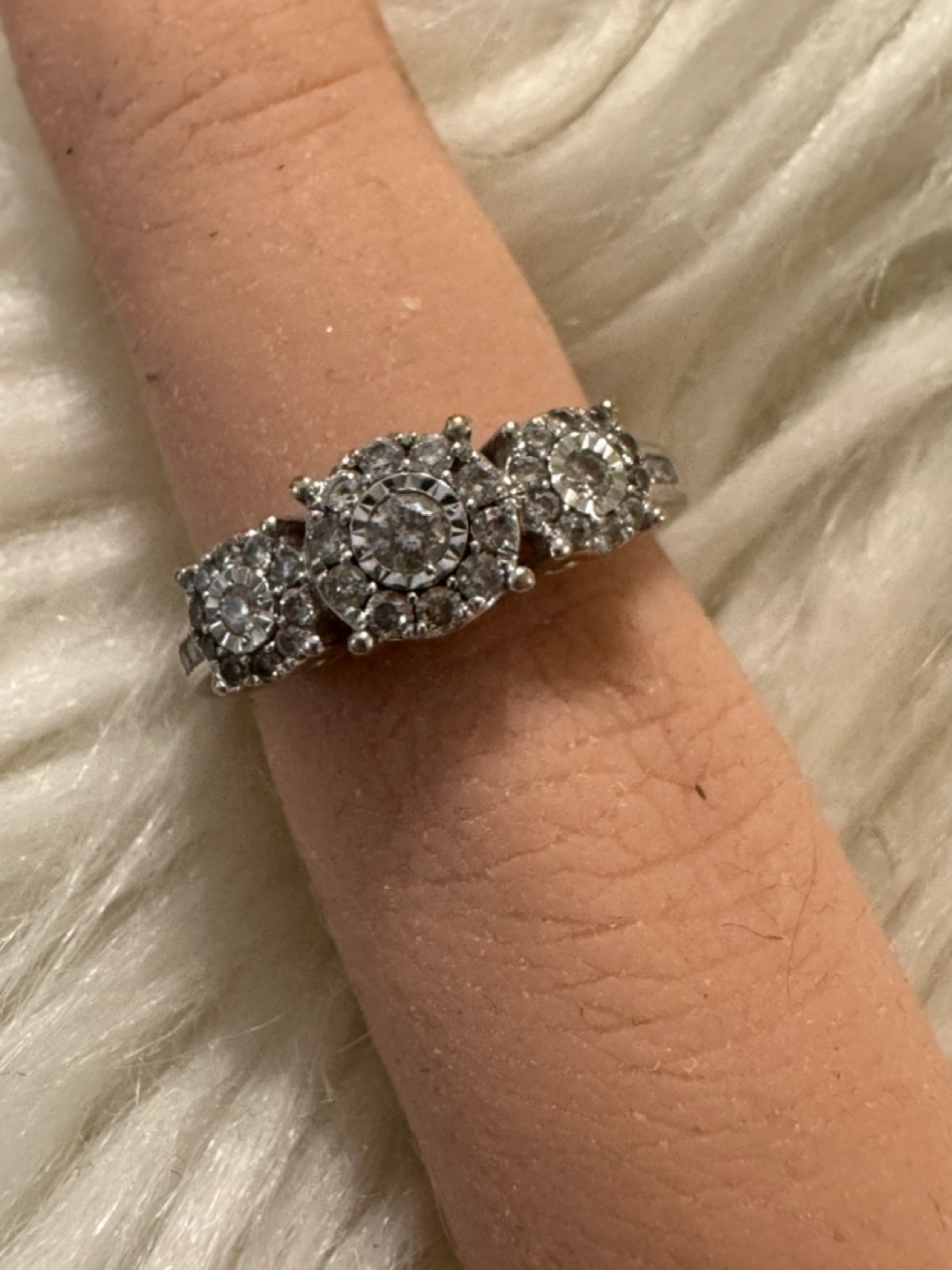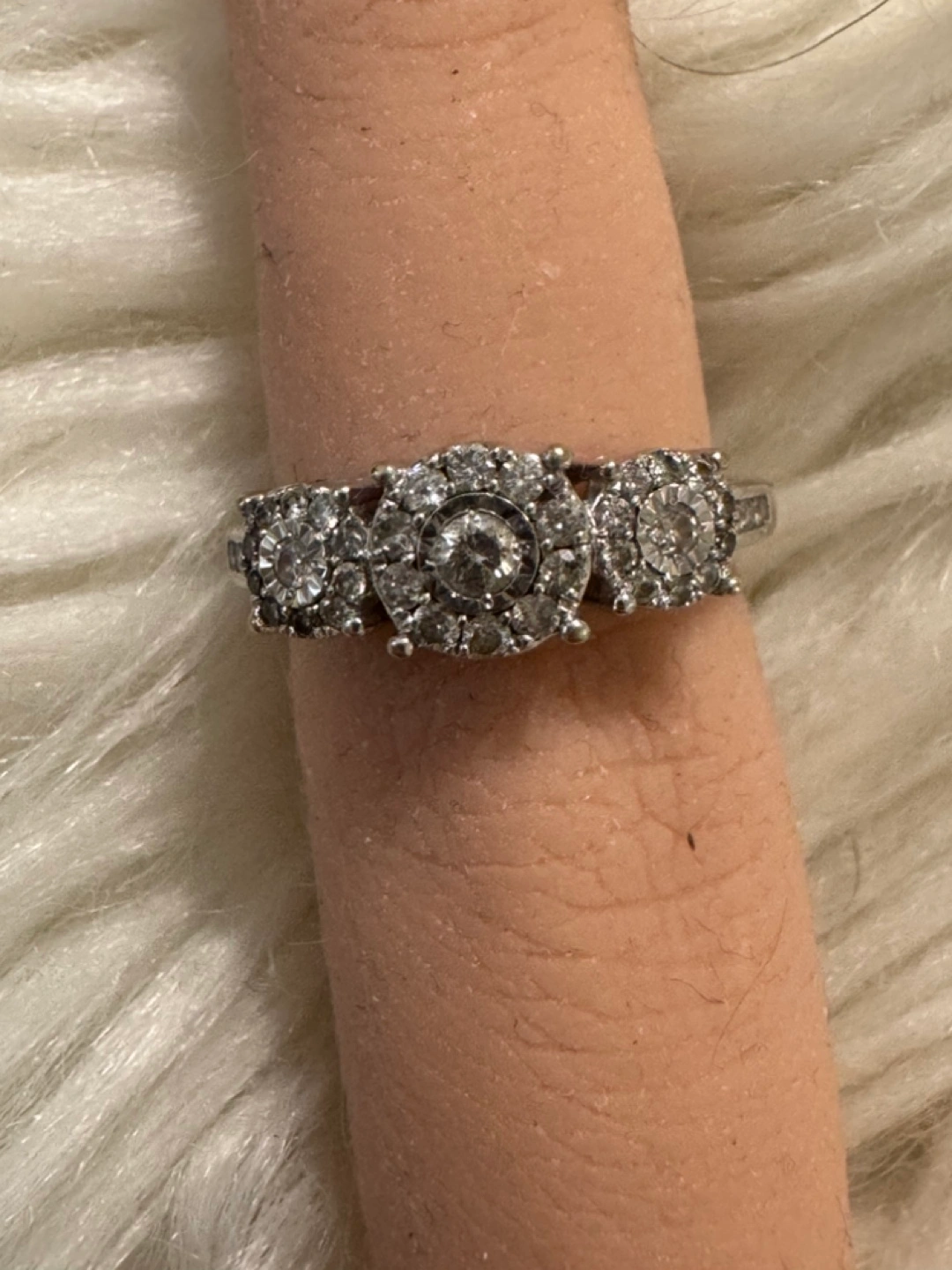 Beautiful three stone diamond ring. Sparkly diamonds. Elegant design. Perfect for everyday wear or special occasions. Don't hesitate to ask if you want we can meet in a jewelry store or wherever you like