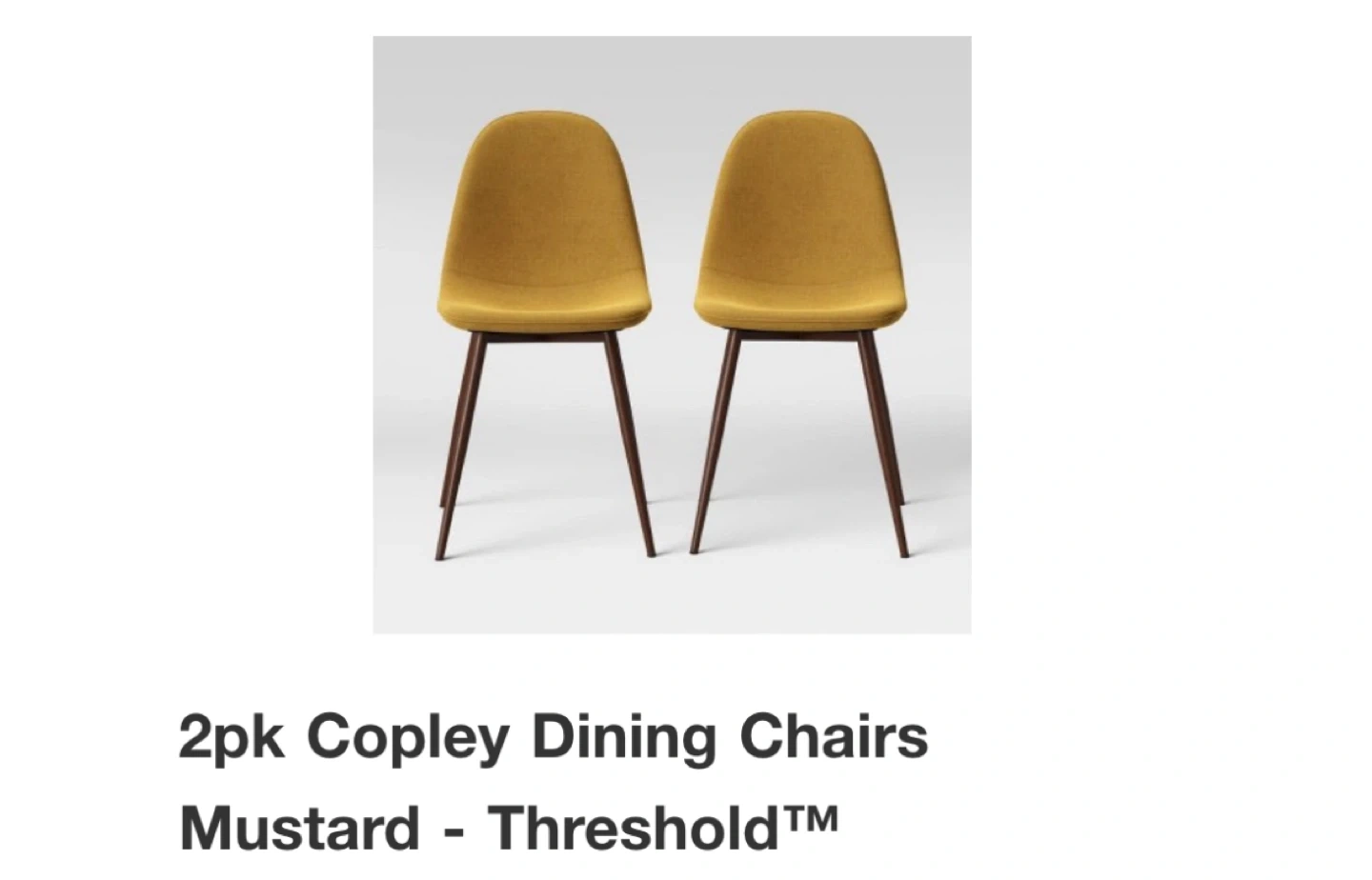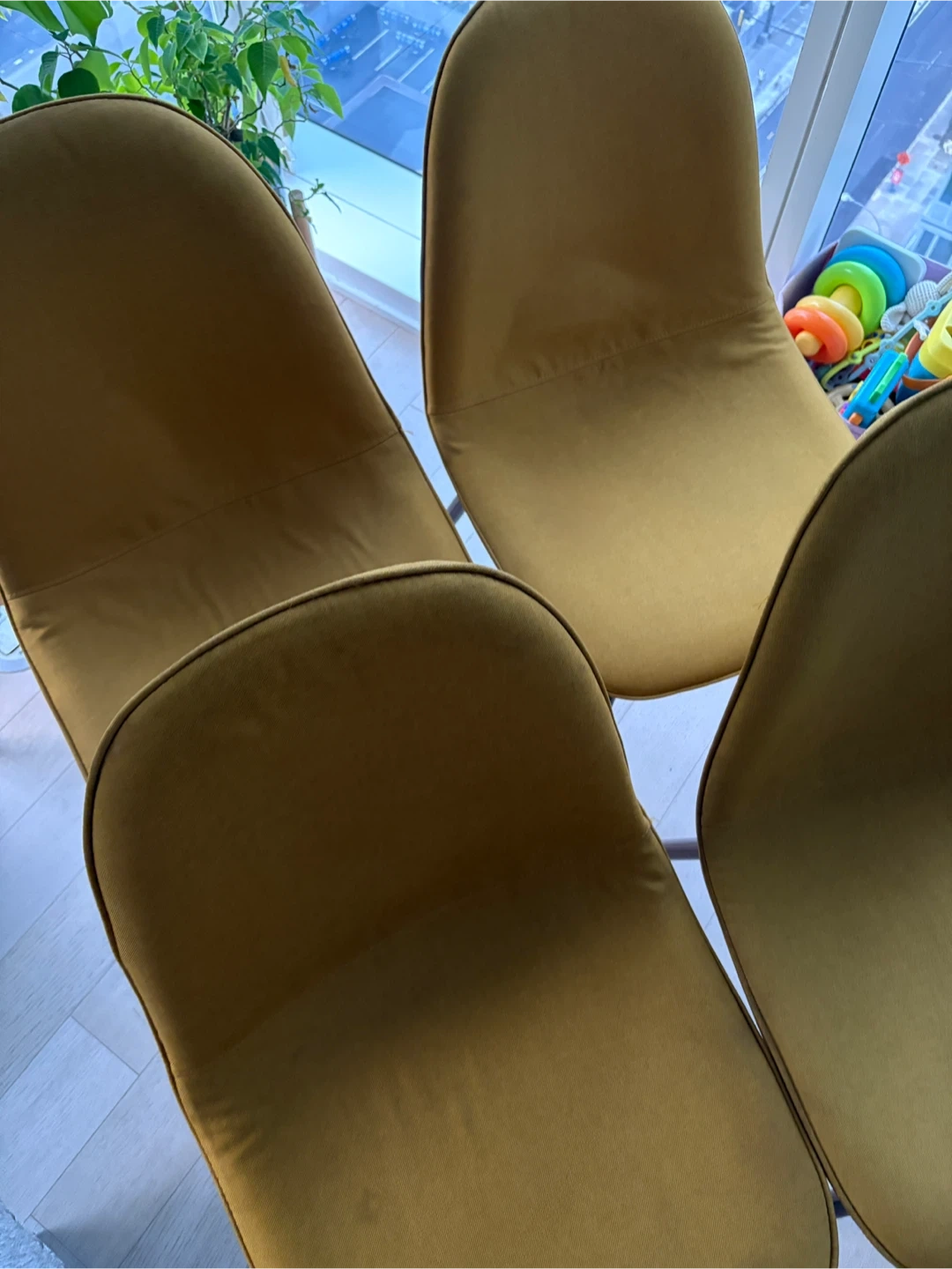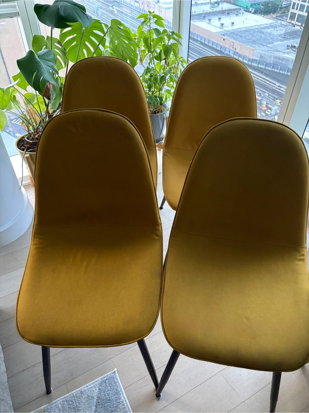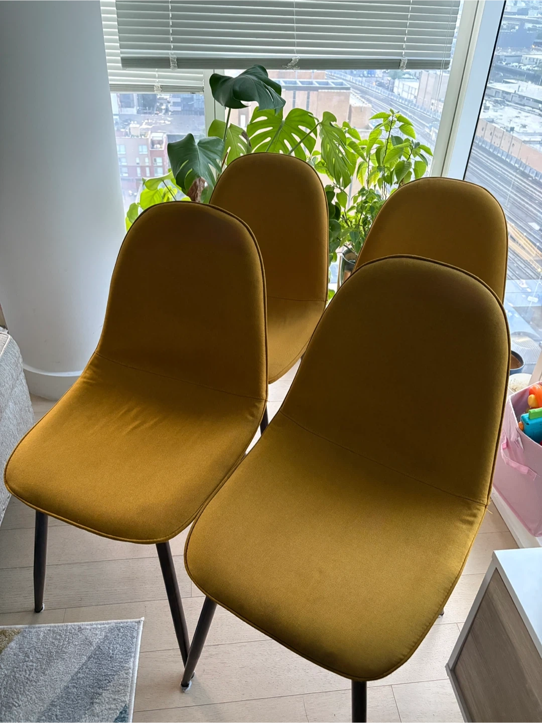 Selling a set of four Threshold Copley dining chairs. They're in great condition and have a stylish, modern look. The chairs are a mustard color and would add a pop of color to any dining space! They have been steamed clean and are ready to find a new home. Retail price (from Target) is $65 per chair! Pick up from Long Island City Cash, venmo or zelle