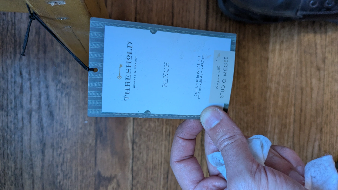 36Selling a Threshold Studio McGee bench. It's 36 inches long, 10 inches wide, and 10 inches tall.