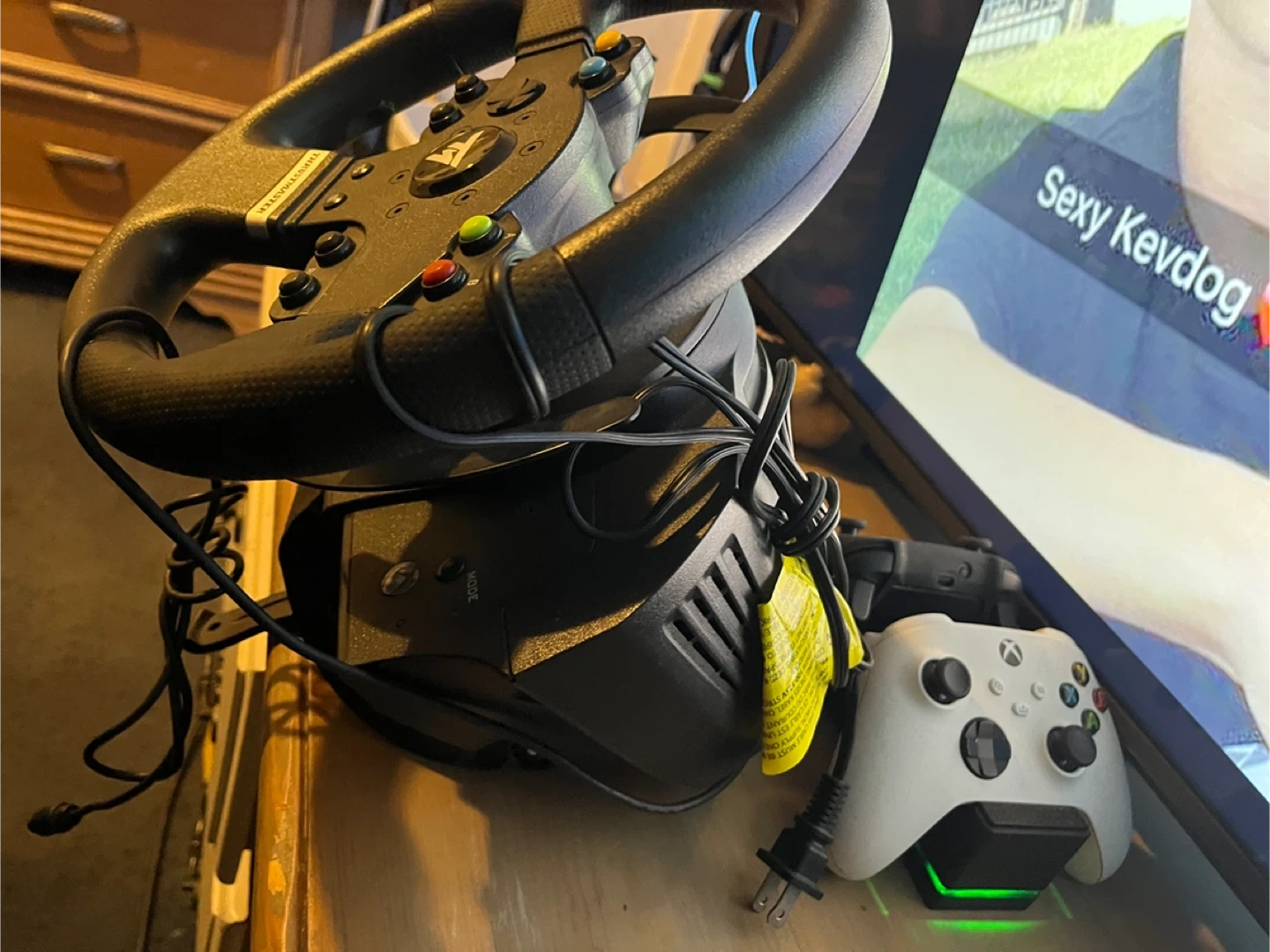 Selling a Thrustmaster TMX Force Feedback racing wheel. It's in great condition and ready for some serious racing action! Perfect for PC and Xbox, it works in any car game like Forza horizon and need for speed and all of those games.