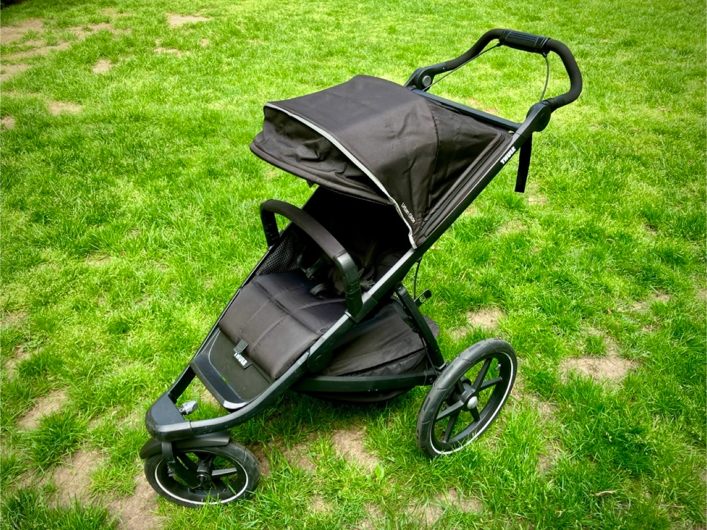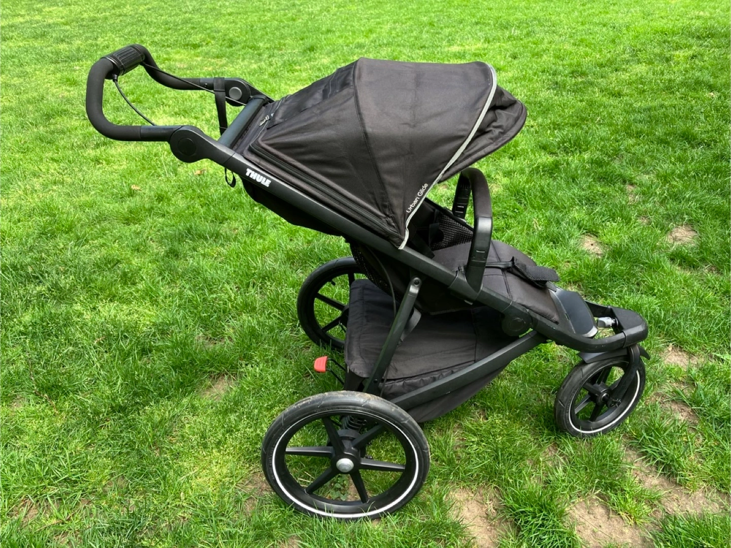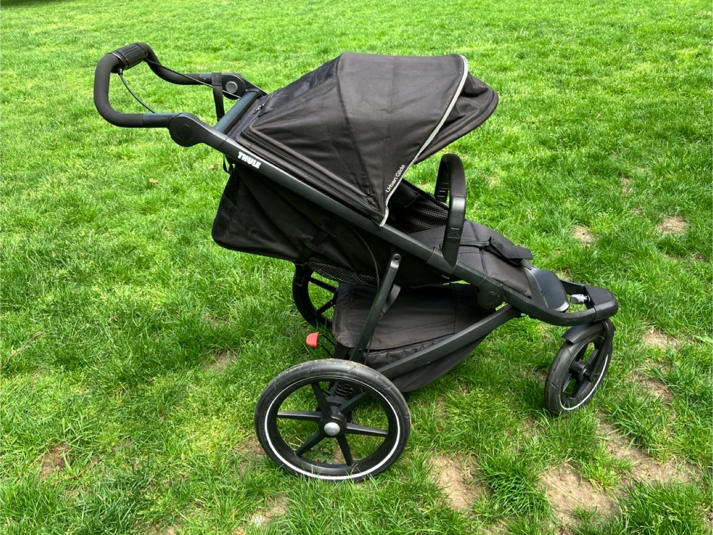 The best jogging stroller and great for gravel and light off-road terrain. Also nice to maneuver around the city, with the smoothest ride thanks to air-filled tires. Has a strong and easy to operate deceleration brake, a covered basket and the seat can be lowered to almost horizontal position for nap time. Comes with original Thule rain cover and bumper bar. With these extras, it retailed for 735$ plus tax. In great condition with minor signs of wear. To be picked up in Gramercy, payment in cash.