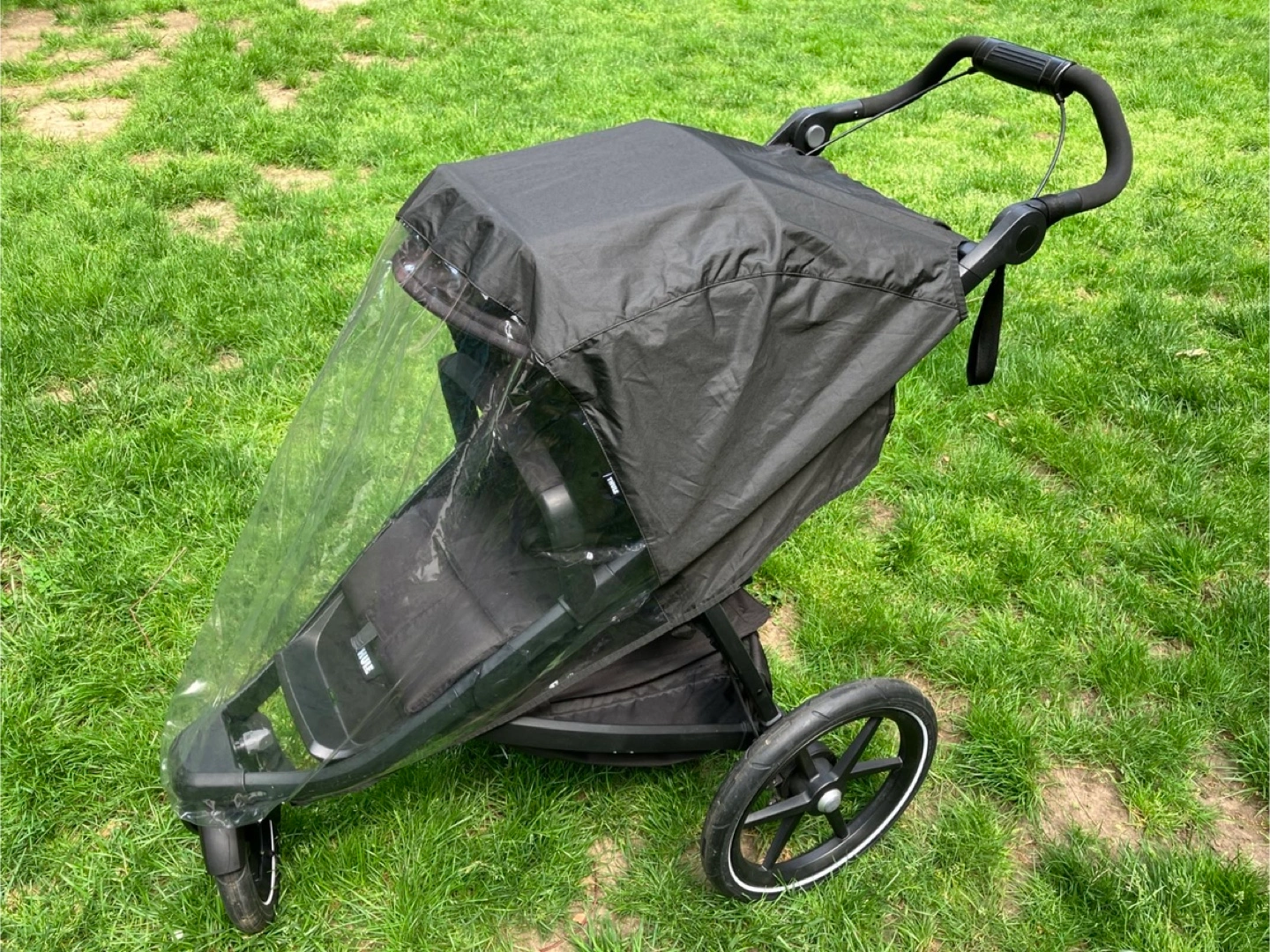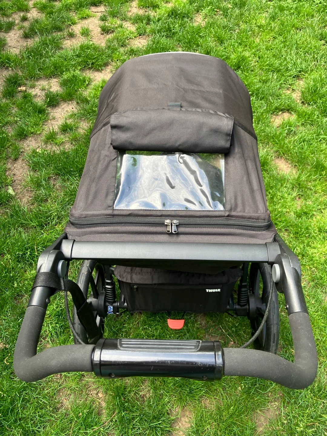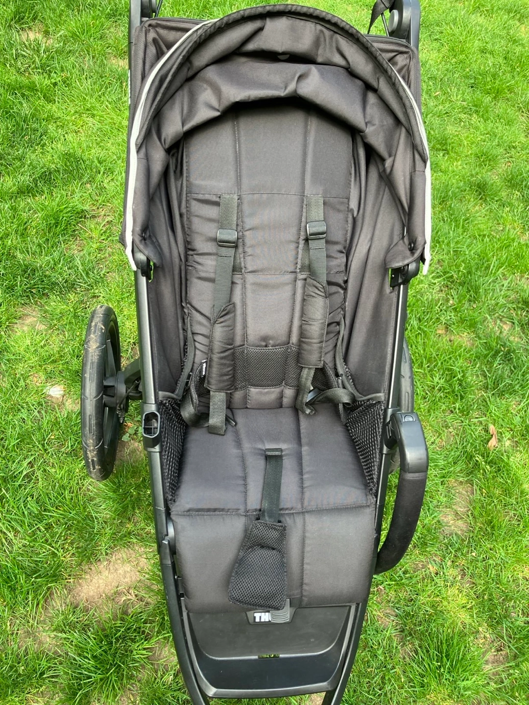 The best jogging stroller and great for gravel and light off-road terrain. Also nice to maneuver around the city, with the smoothest ride thanks to air-filled tires. Has a strong and easy to operate deceleration brake, a covered basket and the seat can be lowered to almost horizontal position for nap time. Comes with original Thule rain cover and bumper bar. With these extras, it retailed for 735$ plus tax. In great condition with minor signs of wear. To be picked up in Gramercy, payment in cash.