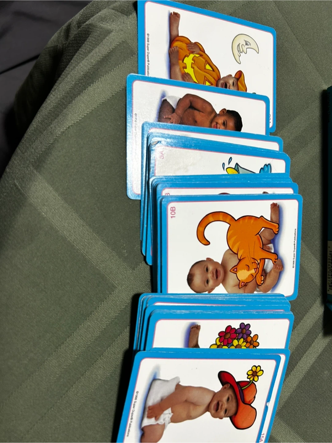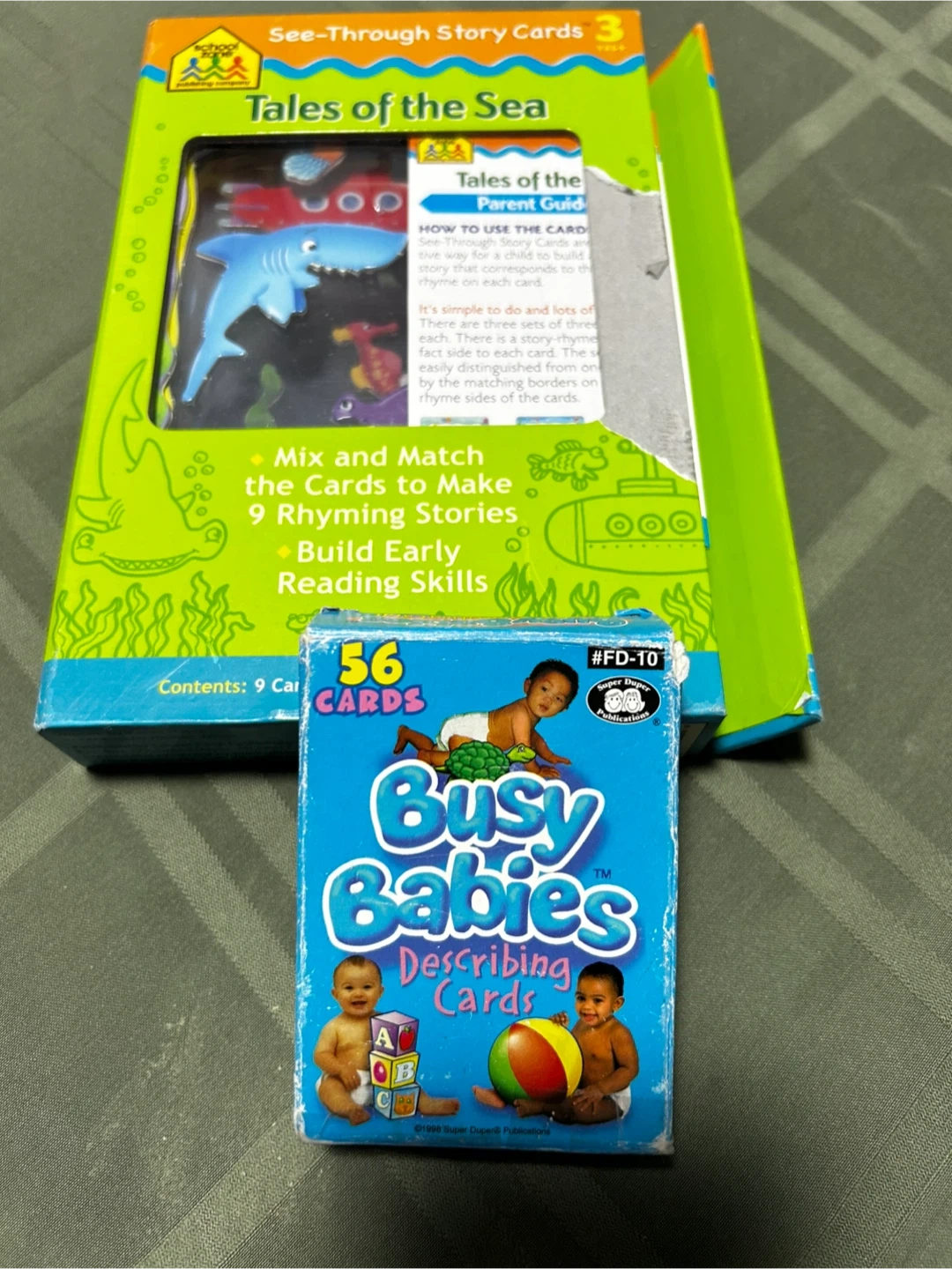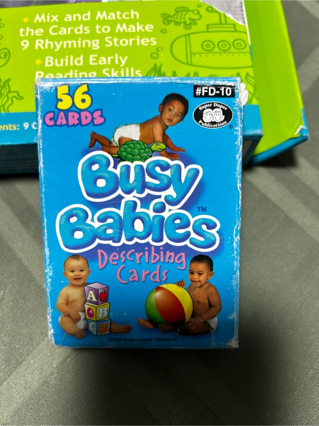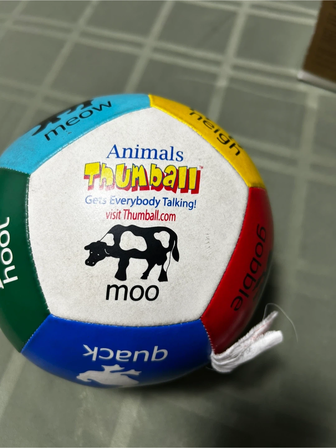 18Selling a Thumball Animals ball that gets everybody talking! It features a cow, duck, dog, and more with their corresponding sounds. Also included is a set of Busy Babies Describing Cards to mix and match and build early reading skills Asking $2.00 each for the ball and the busy baby cards or $3.00 for both. Asking $4.00 for the see through story cards tales of the sea Pick up brooklyn