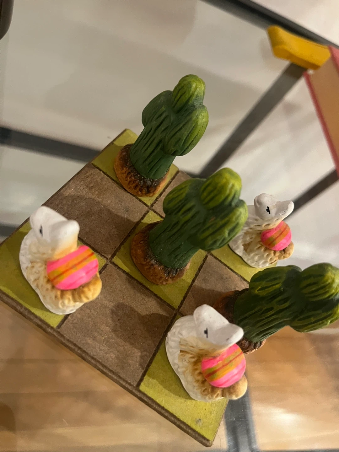 Selling a cute tic-tac-toe board game! It features adorable cactus and sheep pieces. Perfect for a fun and whimsical game night!