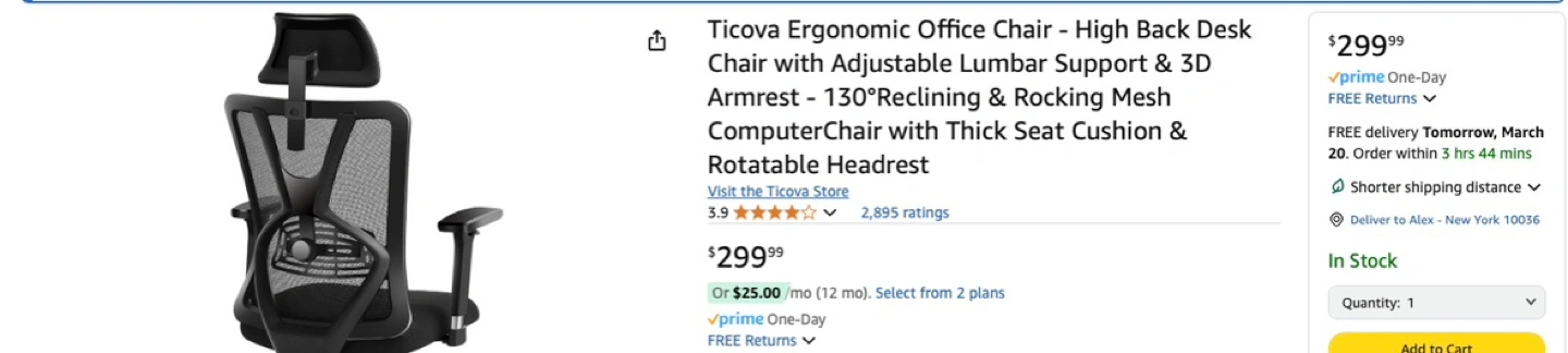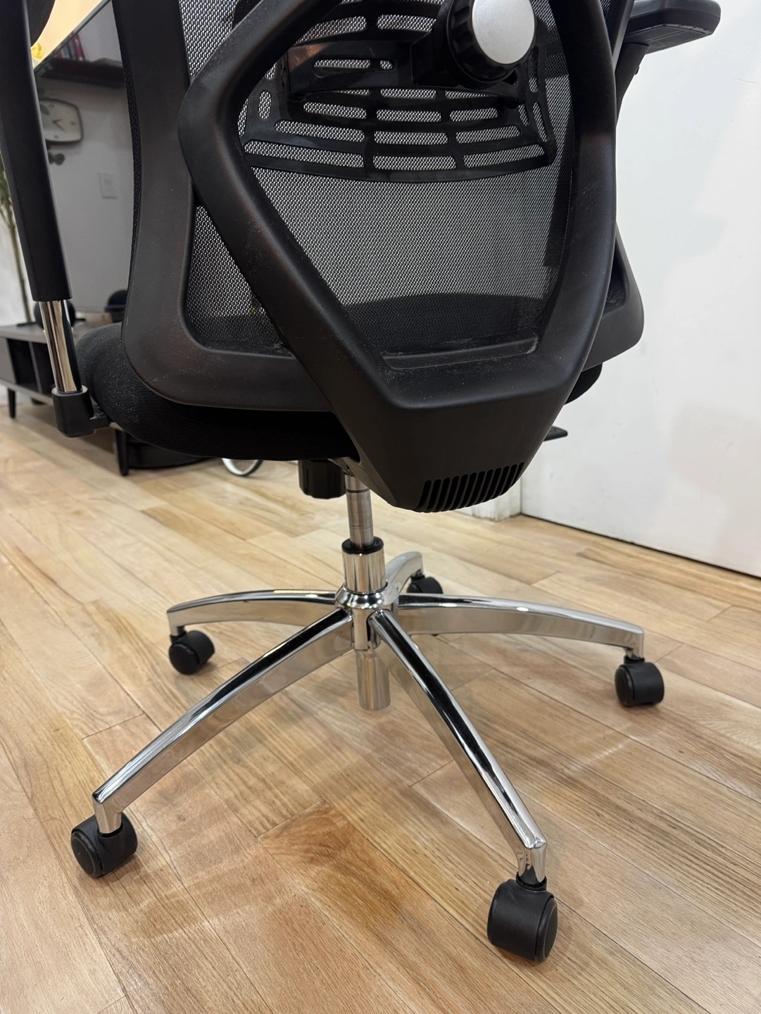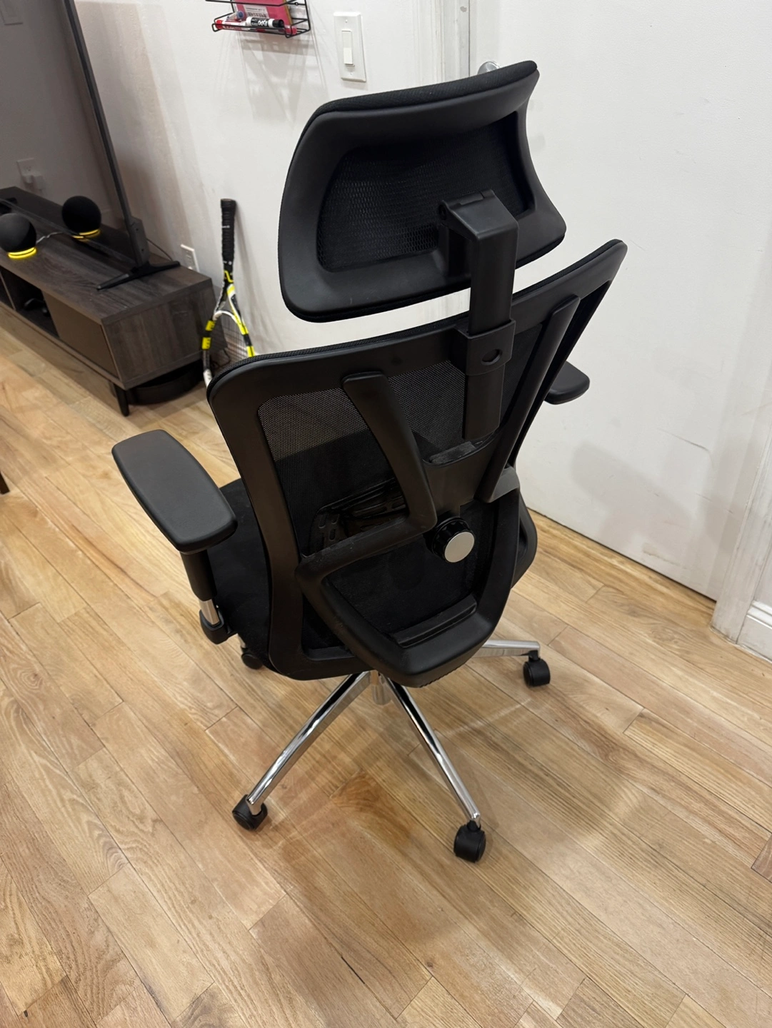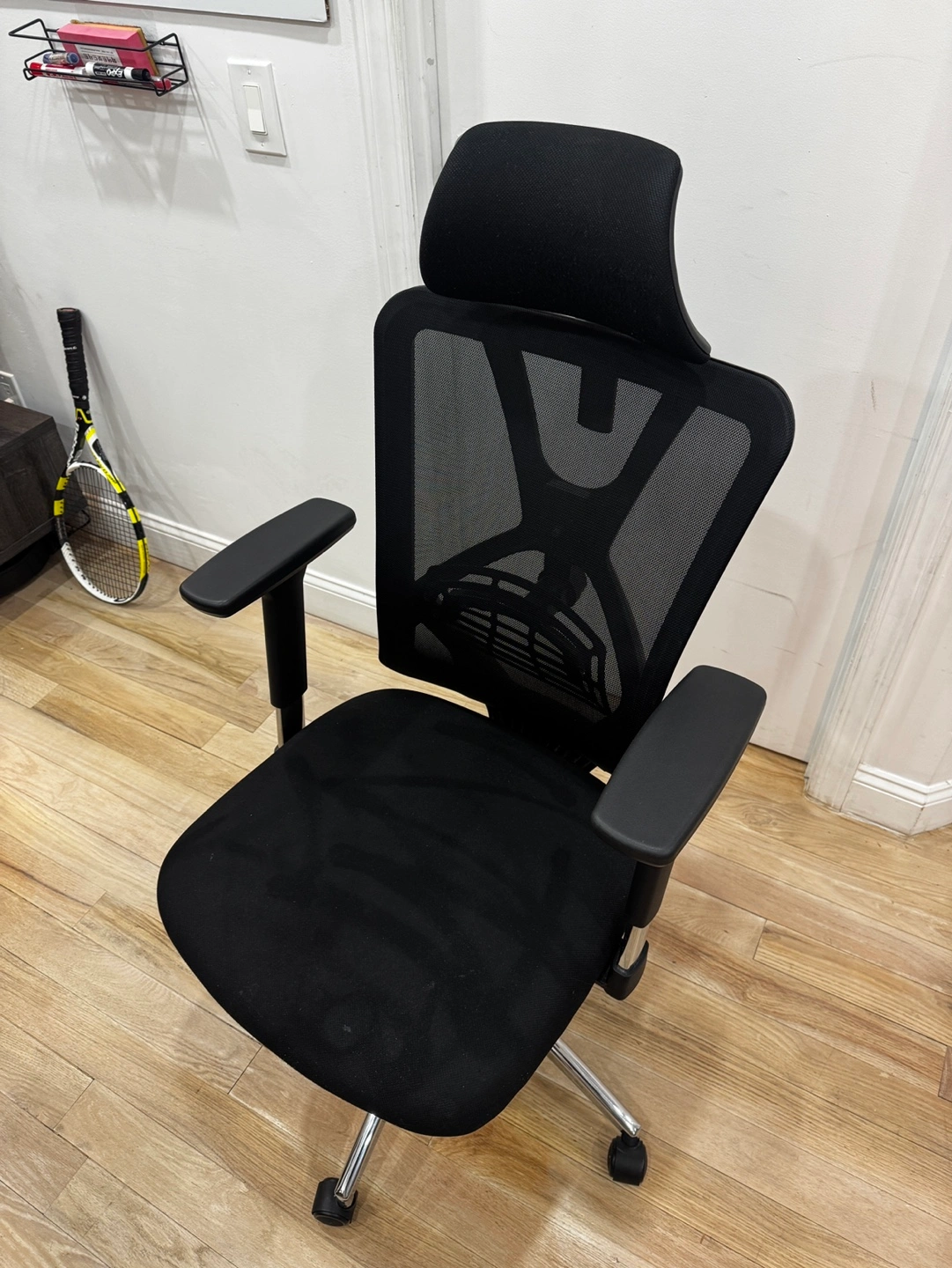 (Original price $300) Black mesh office chair. Adjustable lumbar support. 3D armrests. 130° reclining. Rotatable headrest. *Pickup at Hell's Kitchen / Midtown West