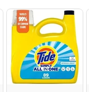 10Selling a bottle of Tide Simply All in One laundry detergent. It tackles 99% of common stains and offers a refreshing breeze scent. Good for 89 loads! 117oz bottle