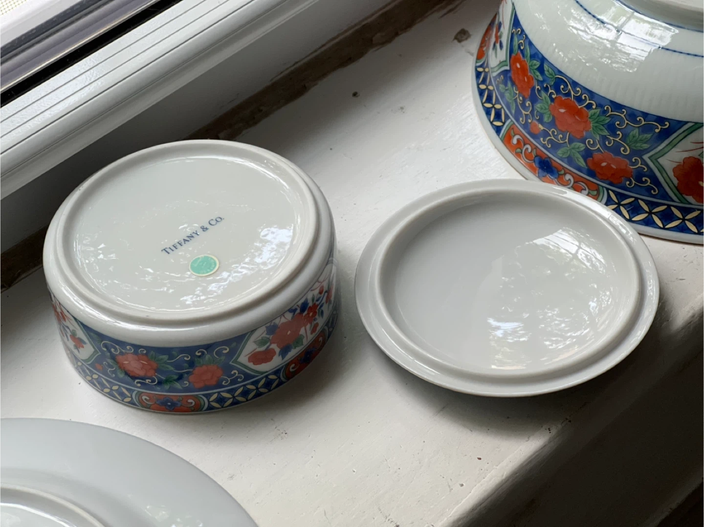 15Selling a beautiful Tiffany & Co. porcelain set featuring a floral design. The set includes a plate, a bowl, and a lidded container. Perfect for adding a touch of elegance to your dining collection!…Tiffany and Company Imari Decorative Pieces Lot of 3 items sold together… 1 Bowl 1 Plate 1 Tricket Box with Lid For pick up in Flushing only…at 7-eleven store 146-26 Northern blvd…cash only!
