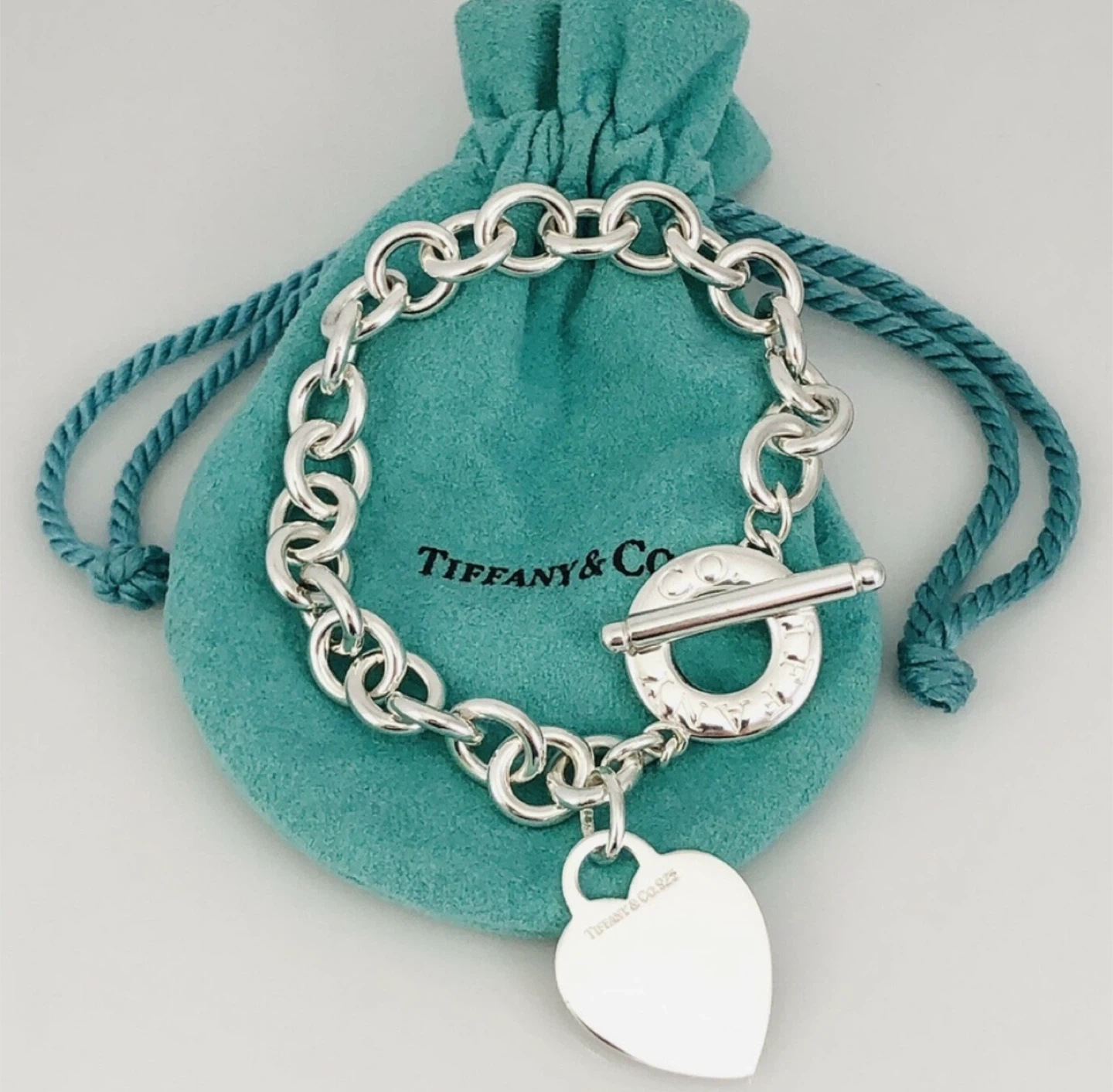 10Selling a beautiful Tiffany & Co. heart tag toggle bracelet. It's in great condition and comes with the original pouch! The bracelet features a classic toggle closure and a heart-shaped tag, perfect for adding a touch of elegance to any outfit